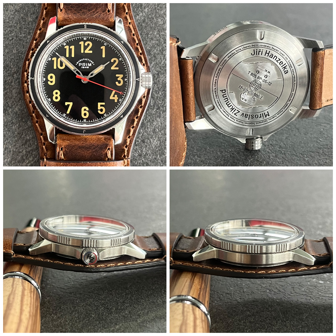 Po dlouhé úvaze jsem se rozhodl nabídnout k prodeji tuhle unikátní limitku vyrobenou v ELTONU v roce 2014 v počtu 21 číslovaných kusů. Nerezové pouzdro, číselník v lahvově zelené barvě, bílé indexy s dvojitou lumi, datumovka na 6, bombírované ručky, hliníková luneta s lumibodem, vyšší dýnko pro automatický strojek. Strojek kříženec kal. 68 a 96 speciálně vytvořený pro tuto limitku běží bez problémů. Kupoval jsem je od původního majitele v krásném stavu, a protože jsem je měl asi třikrát na ruce a zbytek času uložené, nic se na tom nezměnilo.