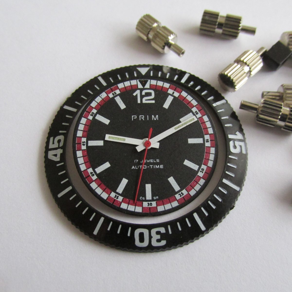 AUTO-TIME PRIM RALLYE - AUTOHODINY PRIM - číselník + ručky + luneta + korunky + fixační kroužky,č.1