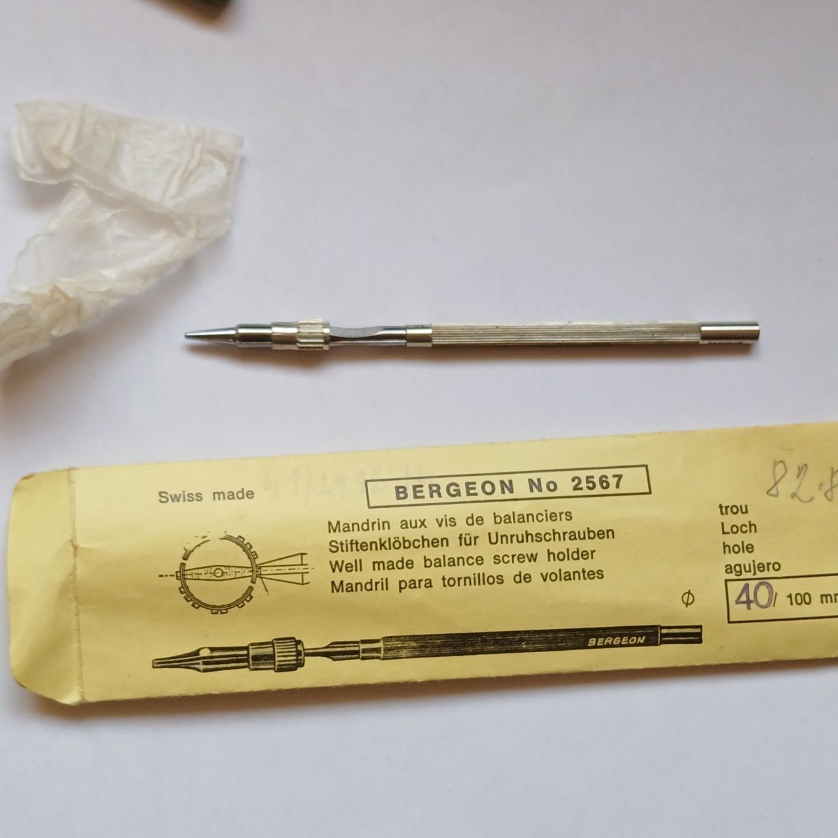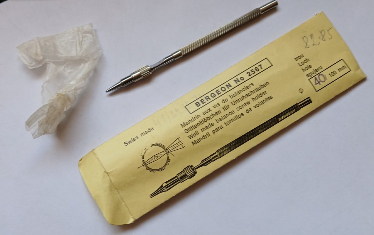 Nepoužité hodinářské nářadí Bergeon na setrvačky.