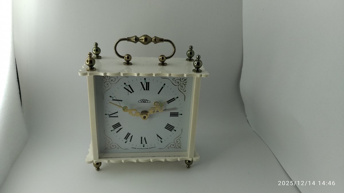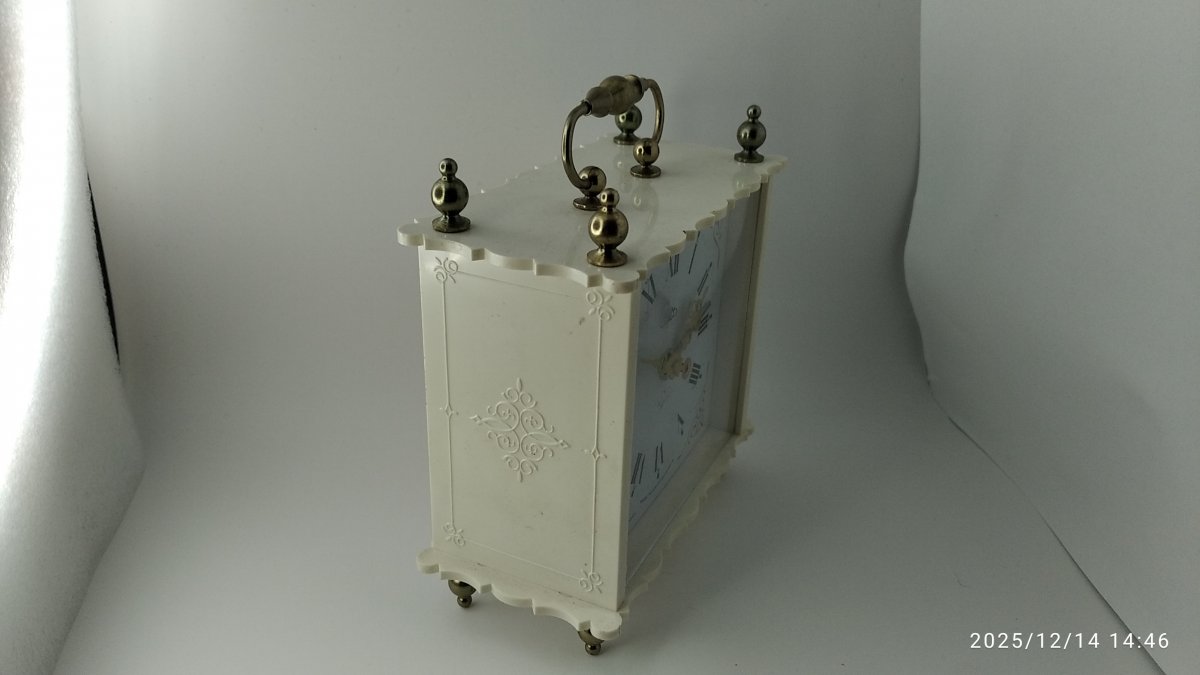 budík romance, krásný bílý a pěkně zachovalý, nevystípané kraje , budík je plně funkční