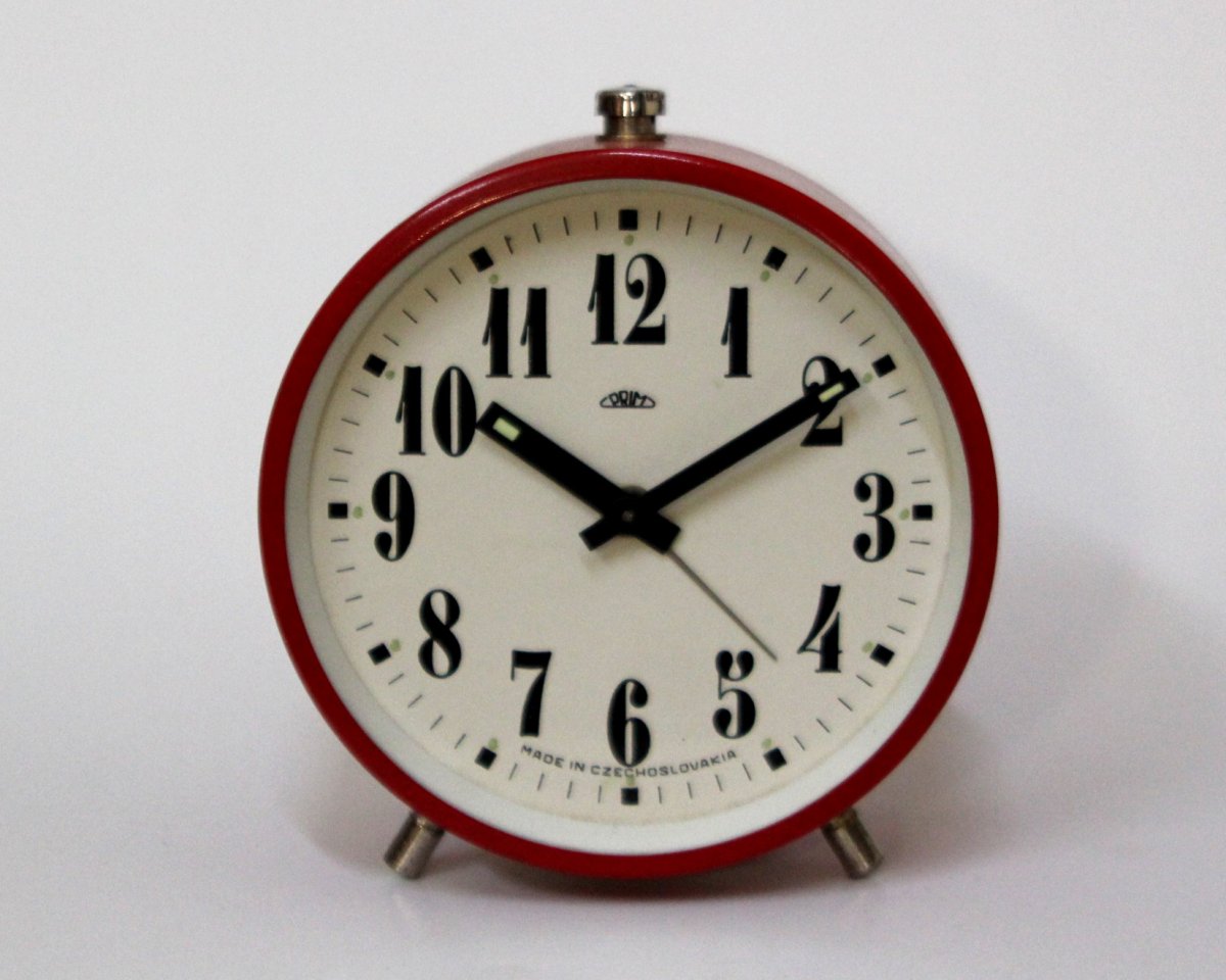 budík Prim B 71, jako nový, funkční, červený