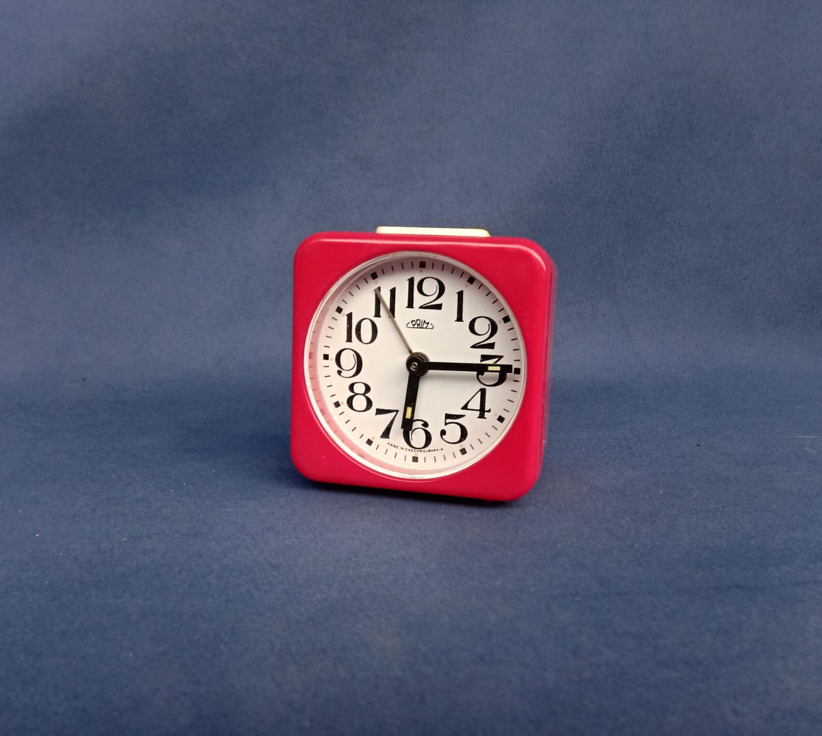 mechanický hranatý budík Prim B71 s kulatým číselníkem, 70.-80. léta , plně funkční, stav velmi dobrý viz. fotodokumentace, rozměr 75 x 75 x 54 mm, hmotnost 180 g, technické parametry viz publikace Hodinky Prim 1954-1994 druhé vydání, autor Ing Hovorka L., str. 462-463 obr. 353, přesnost a doba nátahu neměřeny