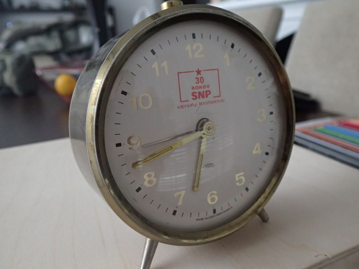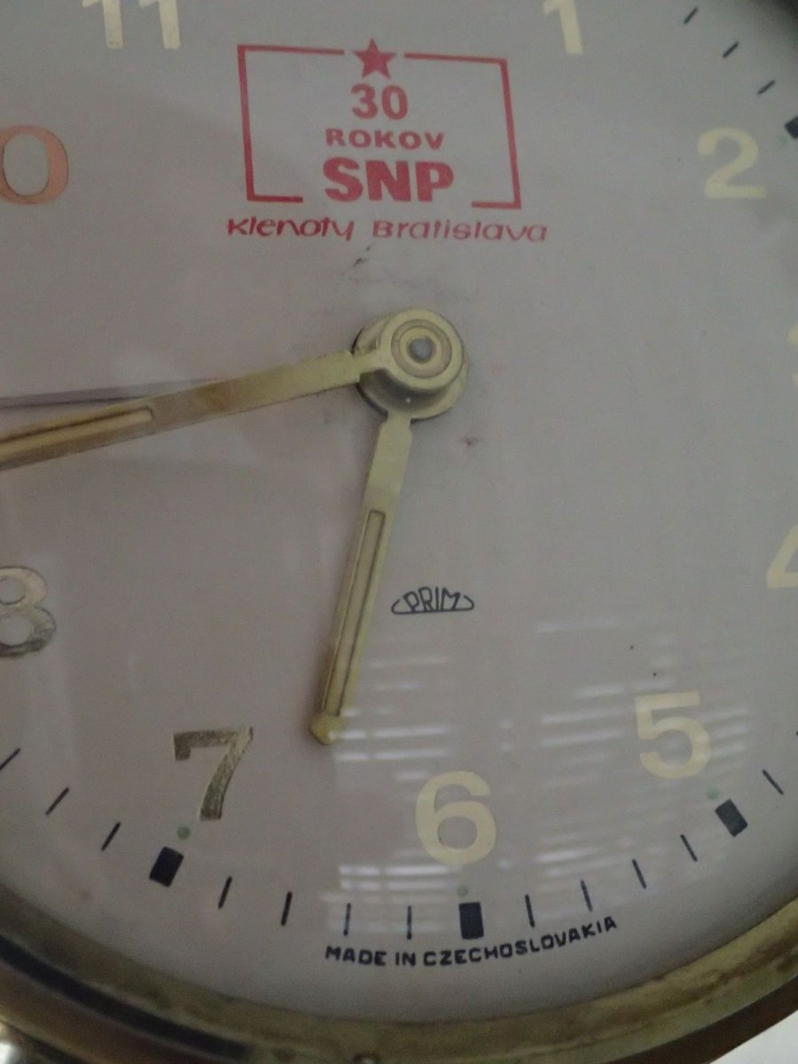 Mechanicky budik PRIM k vyrociu SNP. Funkcny. Stav vid foto.