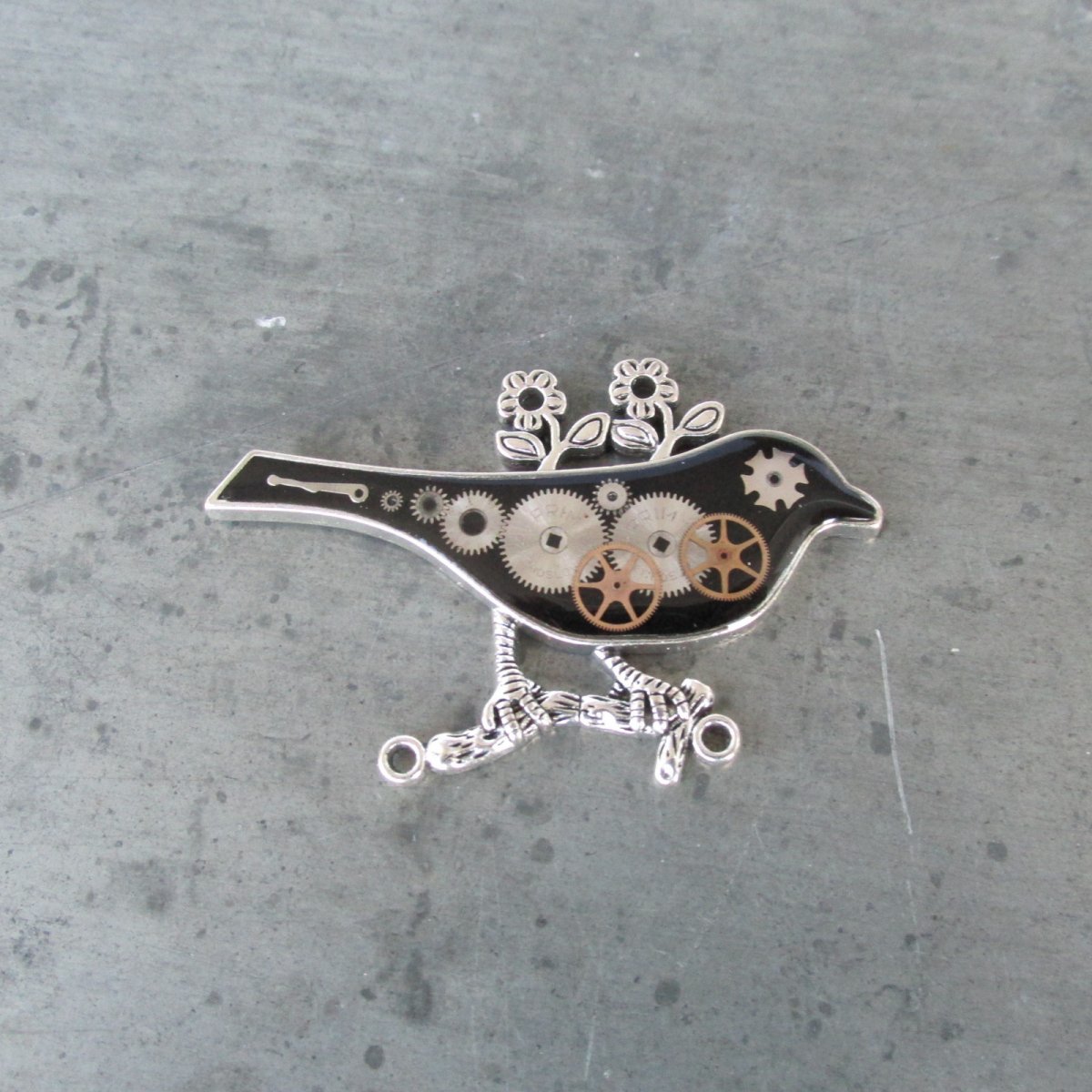 Originální elegantní brož.V OZDOBNÉM STŘÍBRNÉM PTÁČKU, BAREVNĚ PODBARVENÉM. JSOU ZALITY V LESKLÉ KŘIŠŤÁLOVÉ PRYSKYŘICI SOUČÁSTKY Z HODINEK PRIM, CELKOVÁ VELIKOST JE 4x6cm. BEZPEČNOSTNÍ ZAPÍNÁNÍ PROTI ZTRÁTĚ.Dárkově baleno.