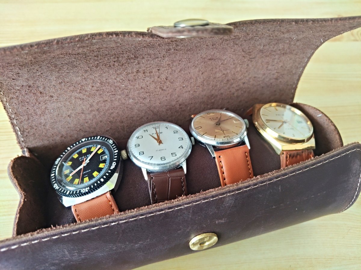 Pozor prosím, hodinky nejsou součástí nabídky, slouží pouze k ilustraci, do futrálu lze umístit buď 4ks menších hodinek nebo 3ks větších.