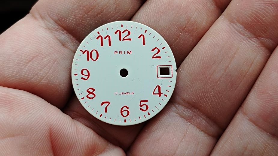 Ciferník Prim     ,Stav viz foto.Hodinky jsou vyřazené z mé osobní sbírky,zboží je použito a tudíž bez záruky.Kupujete to co je na fotu.Snažil jsem se to nafotit v realnem stavu-viz foto.Odesílém řádně zabaleno a pojištěné.Poštuvné dle ceníku ČP.ZÁSILKOVNA.