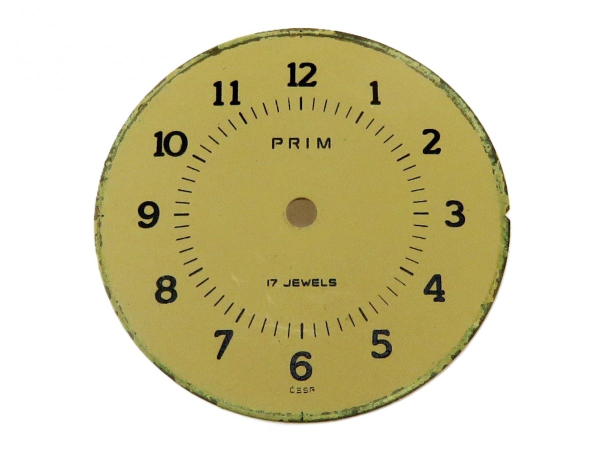 Číselník do plastových hodinek Prim, typ 66 538 6 s integrálním pouzdrem.