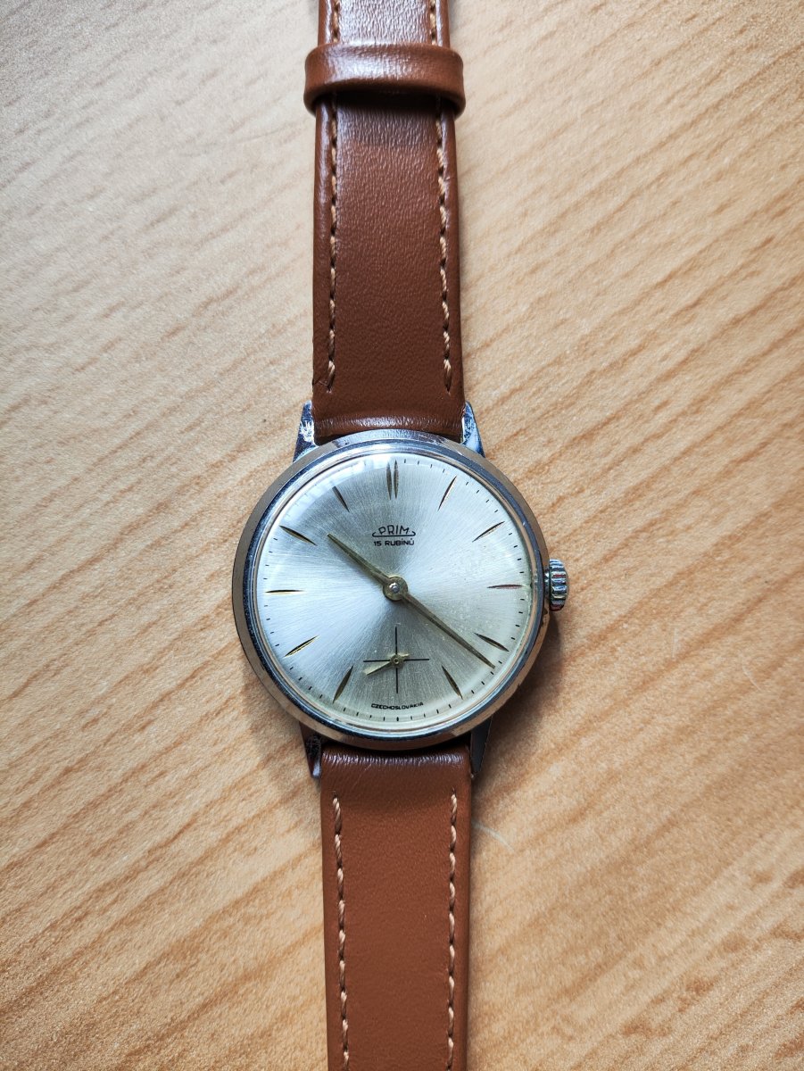 Velmi pěkně zachovalé dámské hodinky Prim 50 se SUNBURST číselníkem, stav viz. fota, dle ref.monografie jde o typ 50 063 1 viz. poslední fotka, nový řemínek.