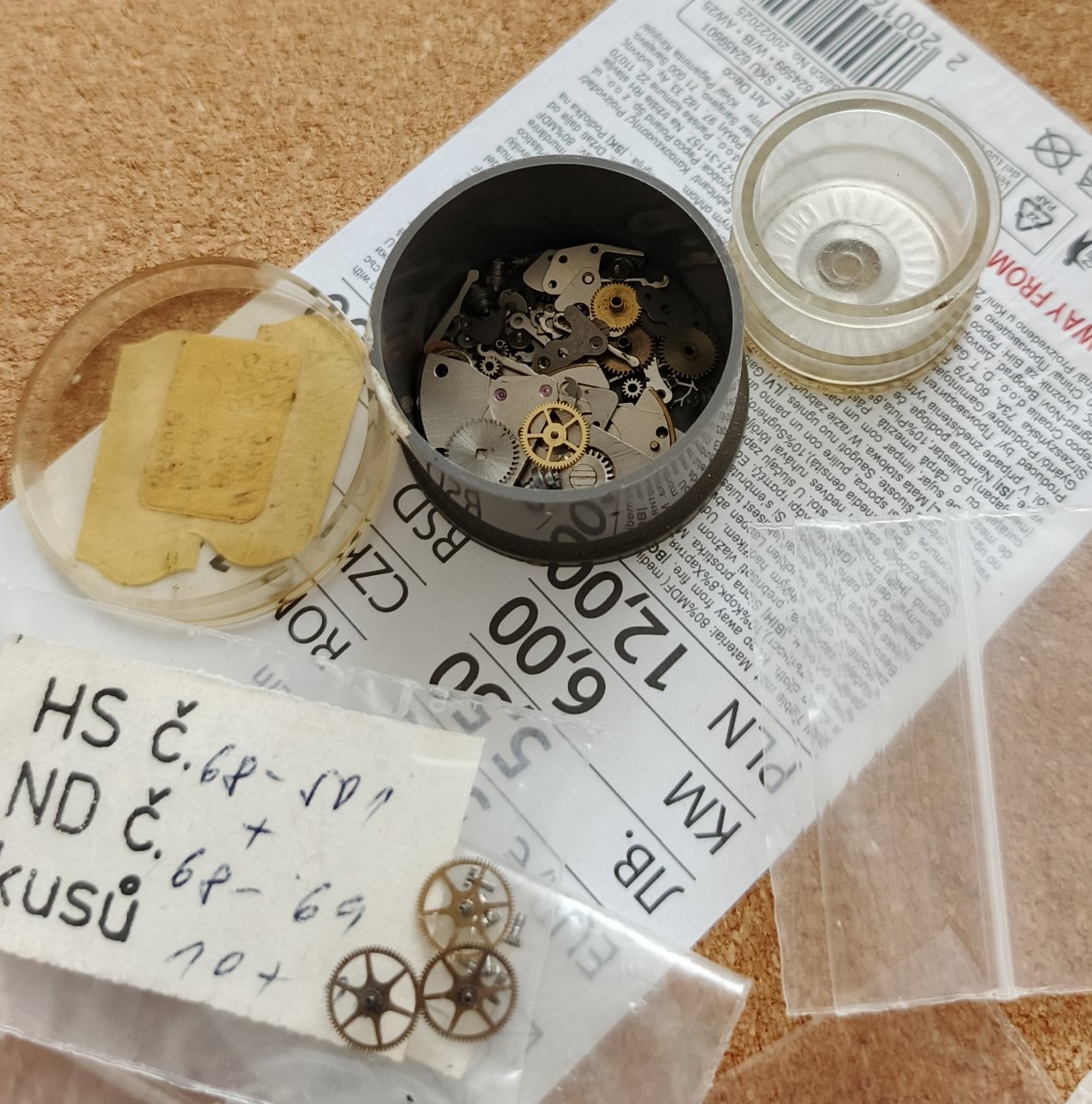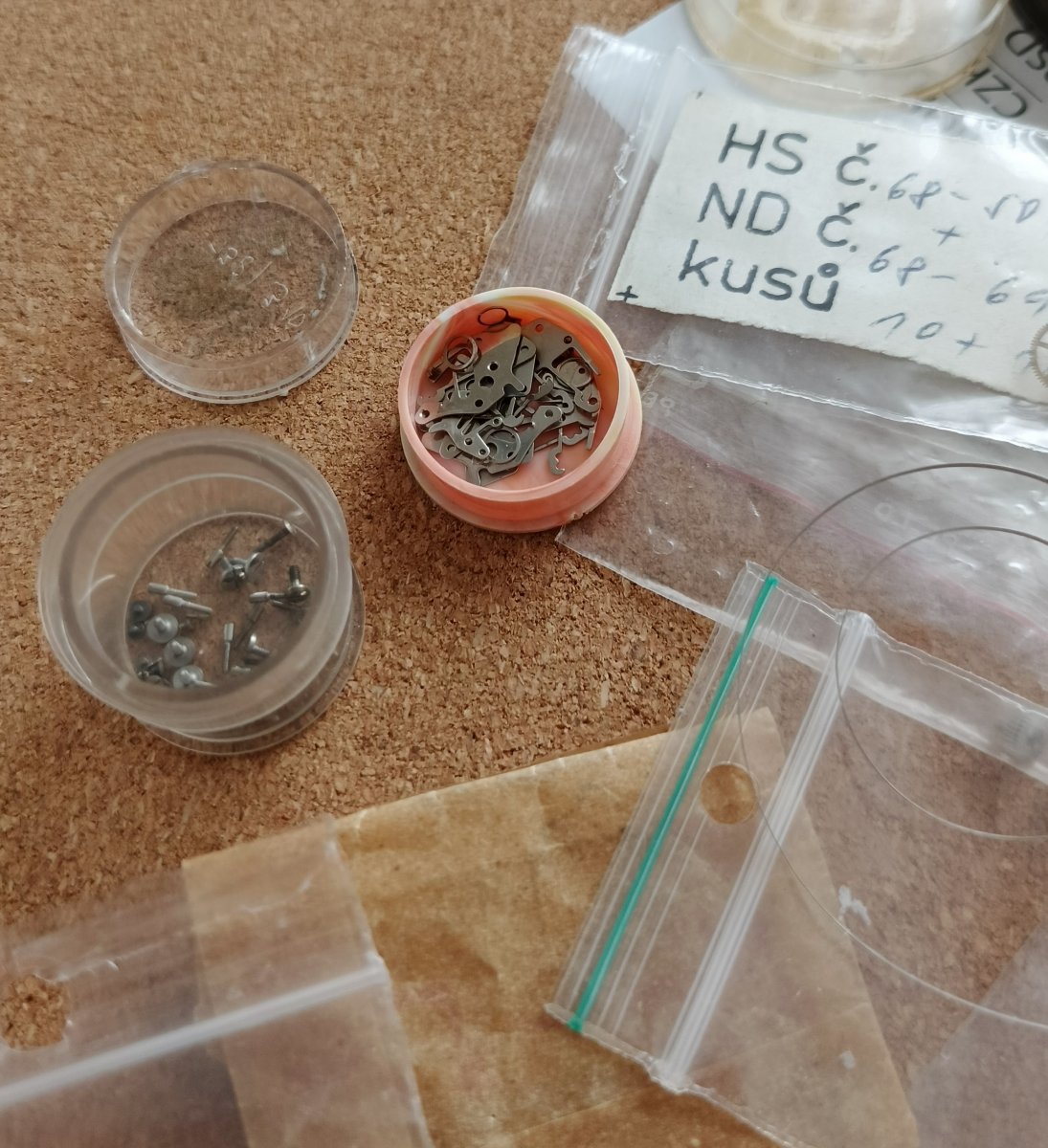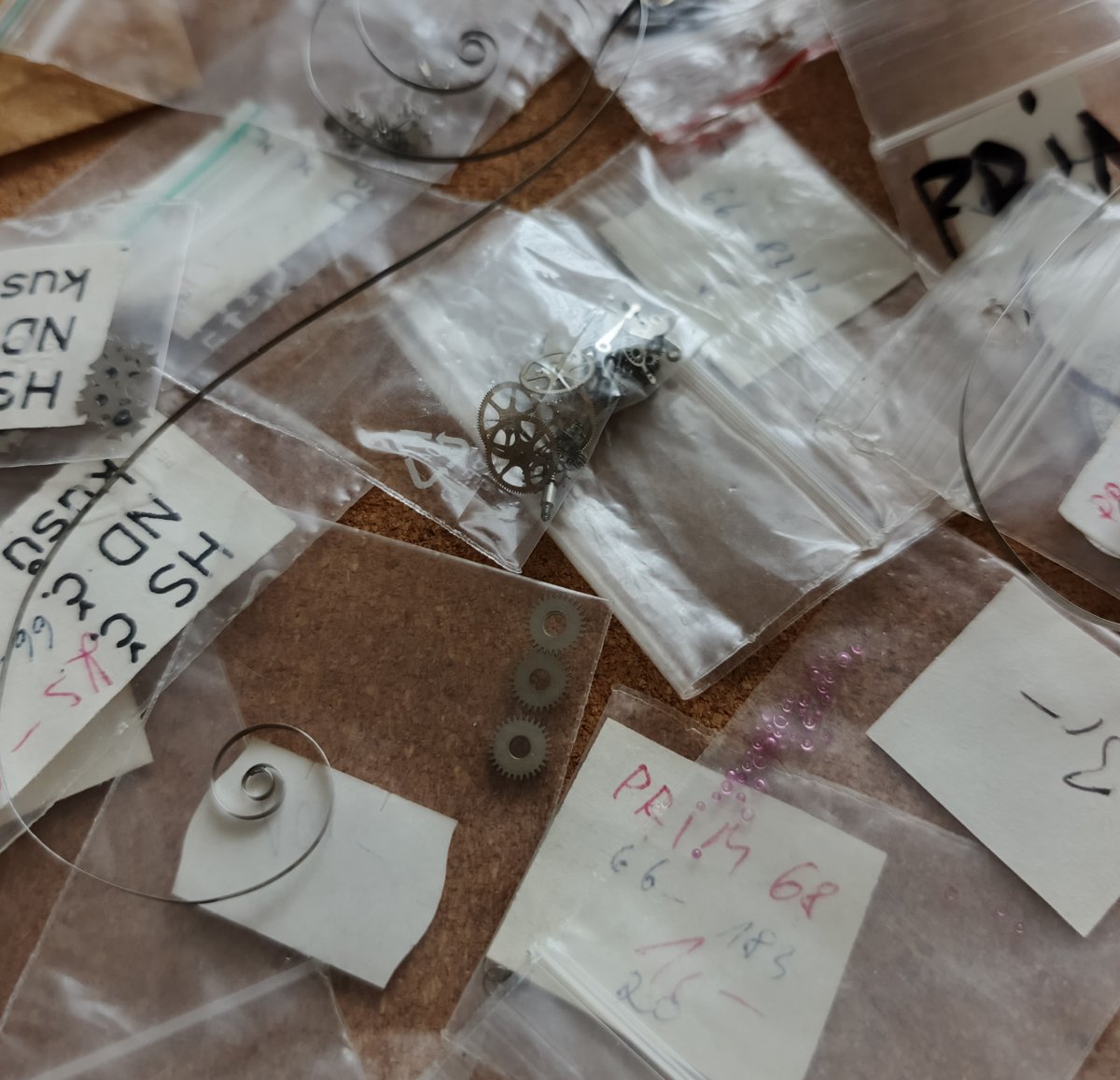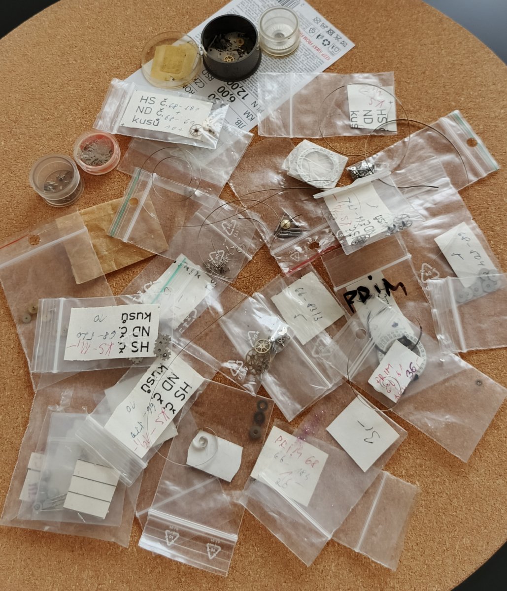 Nepoužité díly na hodinky Prim.