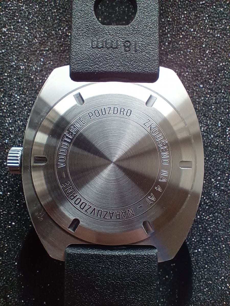 Krásný stav, téměř nenošené. Nerezové renovační ocelové zapouzdření z Eltonu, ciferník původní. Renovační plechová krabička.