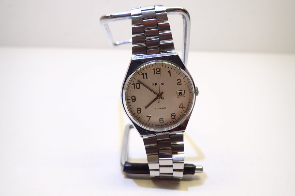 Prodám ze své osobní sbírky pánské náramkové hodinky zn.Prim - cal. - 68 - velikost pouzdra 37 x 34 mm - rok 1974 - jak nové - funkční - přesnost chodu neměřena - na sklůíčku jsou odrazy od focení - jinak stav viz foto.TZasílám pouze zásilkovnou nebo balíkovnou.