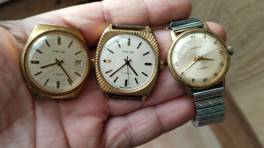 Hodinky Prim 3 Ks funkční nečištěno ,Stav viz foto.Hodinky jsou vyřazené z mé osobní sbírky,zboží je použito a tudíž bez záruky.Kupujete to co je na fotu.Snažil jsem se to nafotit v realnem stavu-viz foto.Odesílém řádně zabaleno a pojištěné.Poštuvné dle ceníku ČP.ZÁSILKOVNA.
