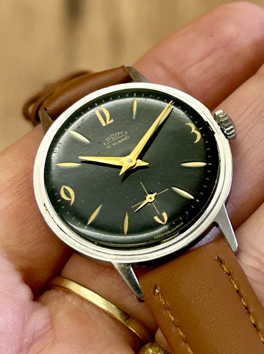 Prodám pěkné hodinky Prim. Velikost 30 mm, nové sklo, krásný lesklý cifernik. Nový kvalitní řemen.