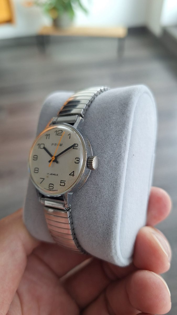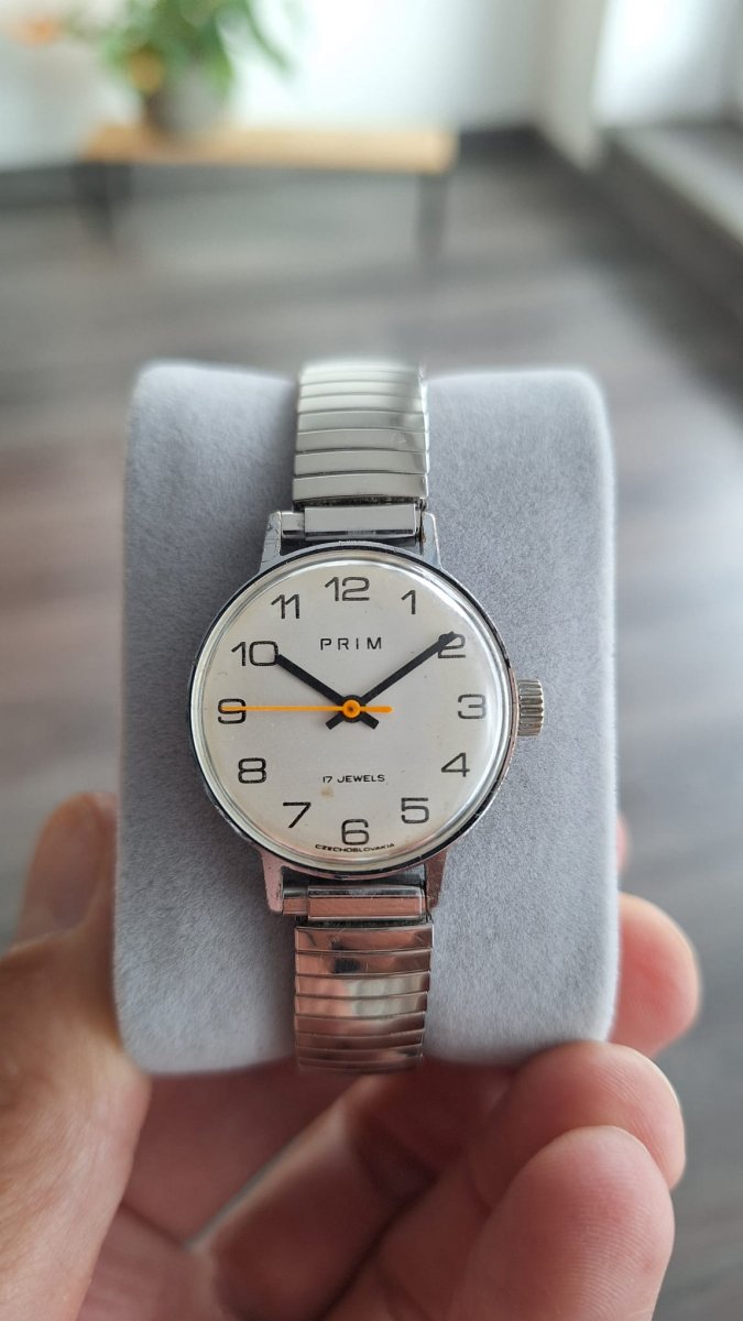 Hodinky jsou funkční, strojek byl vyčištěn a kontrolován hodinářem, vizuální stav dle foto. Pásek je součástí nabídky. Přesnost a délka chodu nesledována. Vzhledem k stáří prodávám bez záruky.