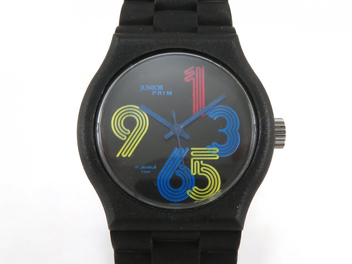 Plastové hodinky PRIM z druhé poloviny 80. let. Vzácný typ 66 561 6.