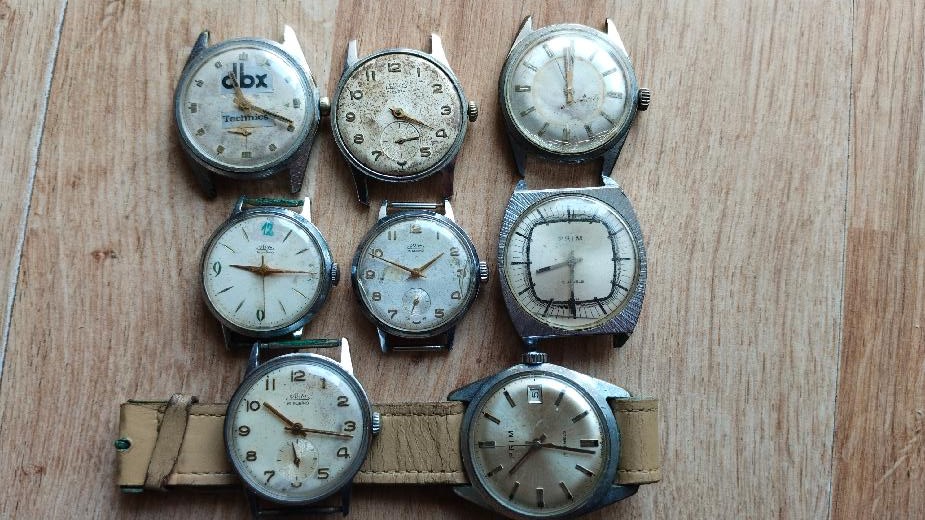 Hodinky Prim 5 ks funkční 3 ks nefunkční nečištěno ,Stav viz foto.Hodinky jsou vyřazené z mé osobní sbírky,zboží je použito a tudíž bez záruky.Kupujete to co je na fotu.Snažil jsem se to nafotit v realnem stavu-viz foto.Odesílém řádně zabaleno a pojištěné.Poštuvné dle ceníku ČP.ZÁSILKOVNA.