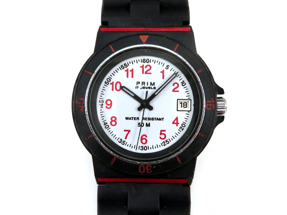Sportovní náramkové hodinky PRIM z roku 1994. Typ 64 654 6.