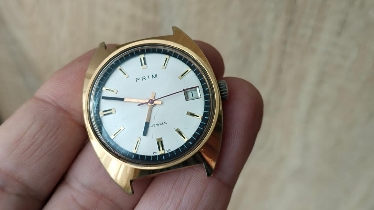 Hodinky Prim funkční nečištěno  ,Stav viz foto.Hodinky jsou vyřazené z mé osobní sbírky,zboží je použito a tudíž bez záruky.Kupujete to co je na fotu.Snažil jsem se to nafotit v realnem stavu-viz foto.Odesílém řádně zabaleno a pojištěné.Poštuvné dle ceníku ČP.ZÁSILKOVNA.