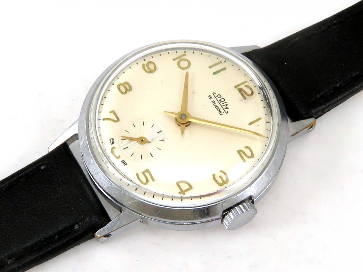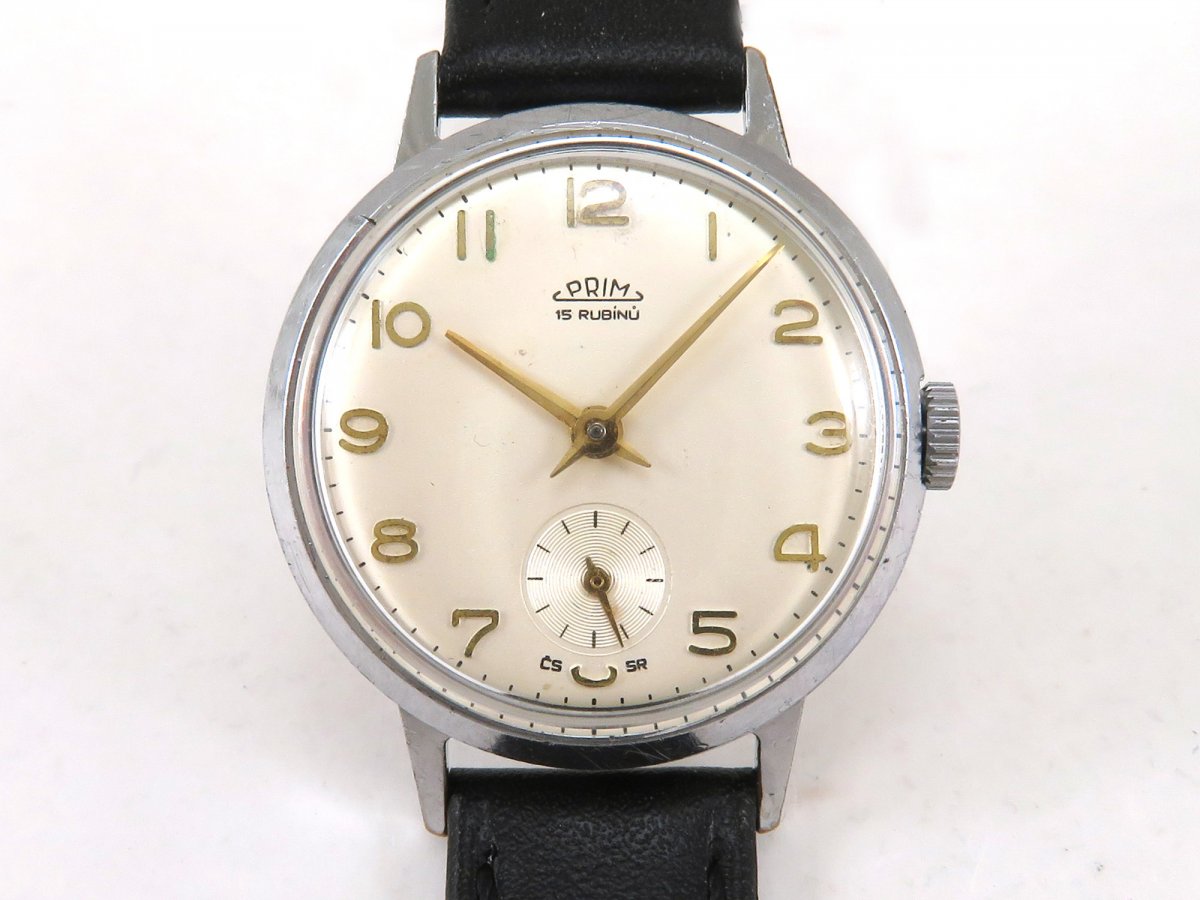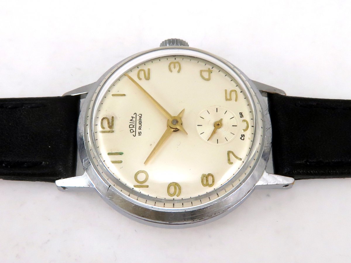 Náramkové hodinky PRIM z první poloviny 60. let. Typ 50 086 1.