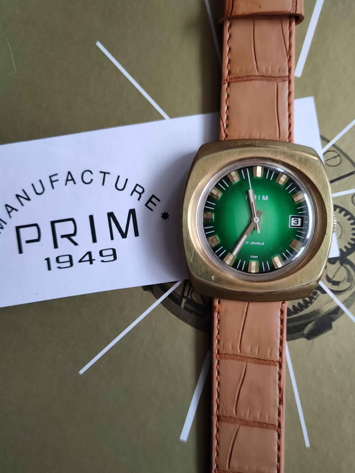 Náramkové hodinky Prim alias - "Hulk" r.v. 1975 Zlacené pouzdro průměru 37 x 41 mm. Typ. 68 310 3. Hodinky jsou plně funkční, seřízené, vyčištěné. Nový řemínek v ceně. Jako starší, použité zboží bohužel bez záruky. Platba 1700 Kč převodem na účet + 100 Kč poštovné: pošta nebo "zásilkovna". Vážný zájem: video přes Messenger nebo WhatsApp. Nejbližší okolí po domluvě jsem schopen dovézt osobně. Do zahraničí a na dobírku neposílám. Pouze na Slovensko, po předchozí domluvě.
