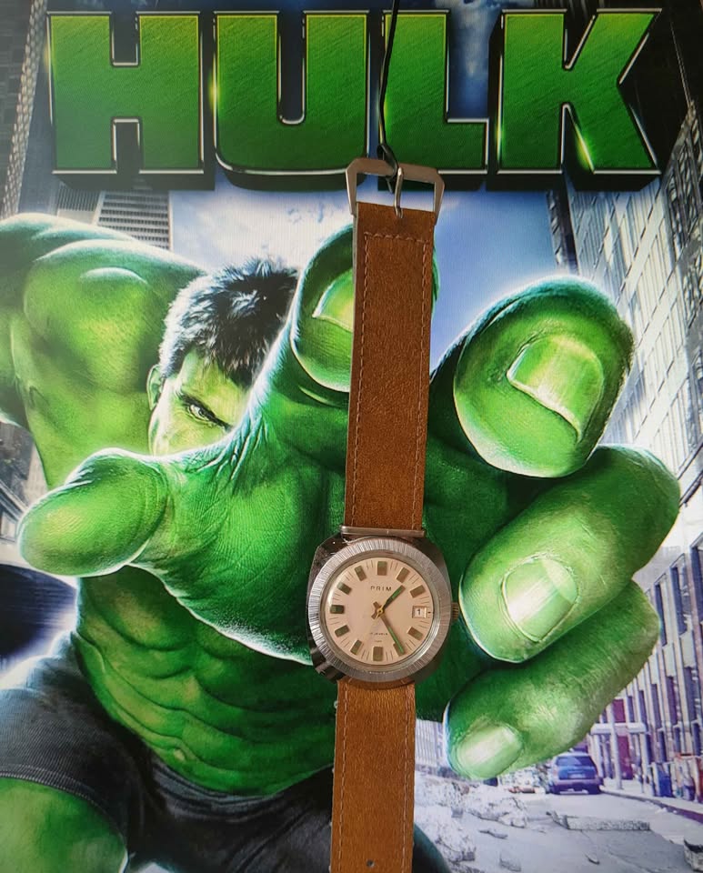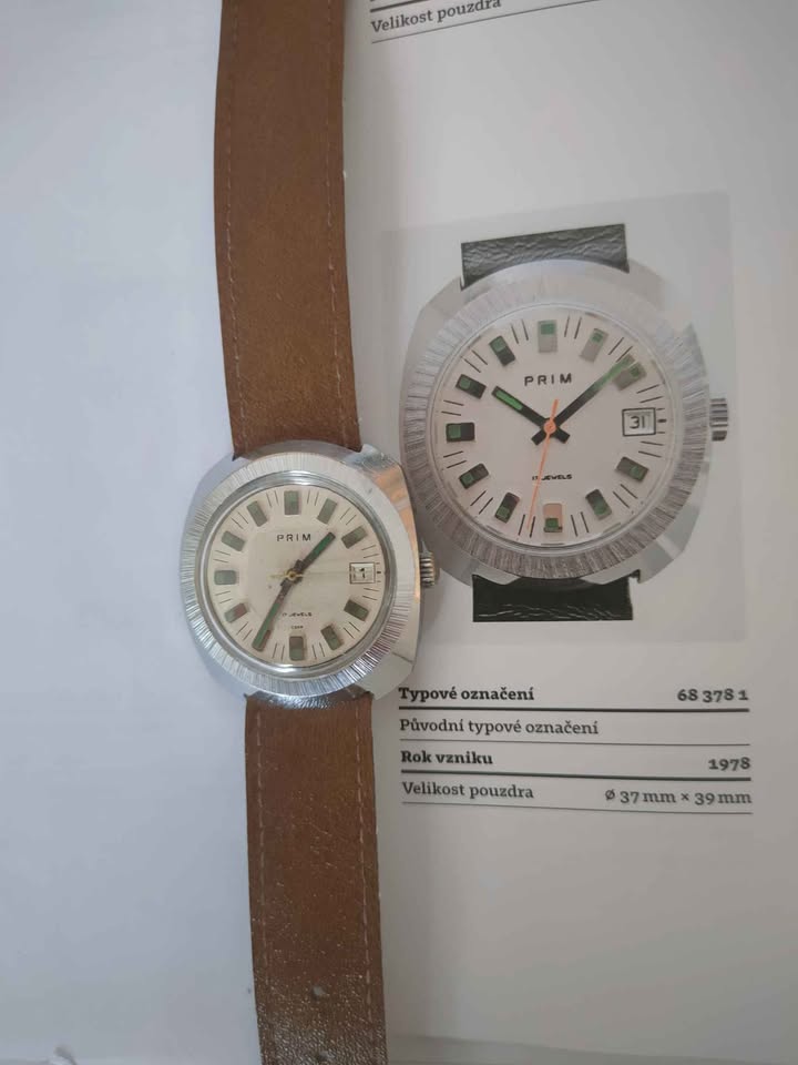 Náramkové hodinky Prim - alias "Hulk" r.v. 1978 Chromované pouzdro průměru 37 x 39 mm. Typ. 68 378 1. Hodinky jsou plně funkční, seřízené, vyčištěné. Nový řemínek v ceně, možnost výběru nebo i kovový tah.. Jako starší, použité zboží bohužel bez záruky. Platba 1000 Kč převodem na účet + 100 Kč poštovné: pošta nebo "zásilkovna". Vážný zájem: video přes WhatsApp nebo Messenger. Nejbližší okolí po domluvě jsem schopen dovézt osobně za poplatek. Do zahraničí a na dobírku neposílám. Pouze na Slovensko, po předchozí domluvě.