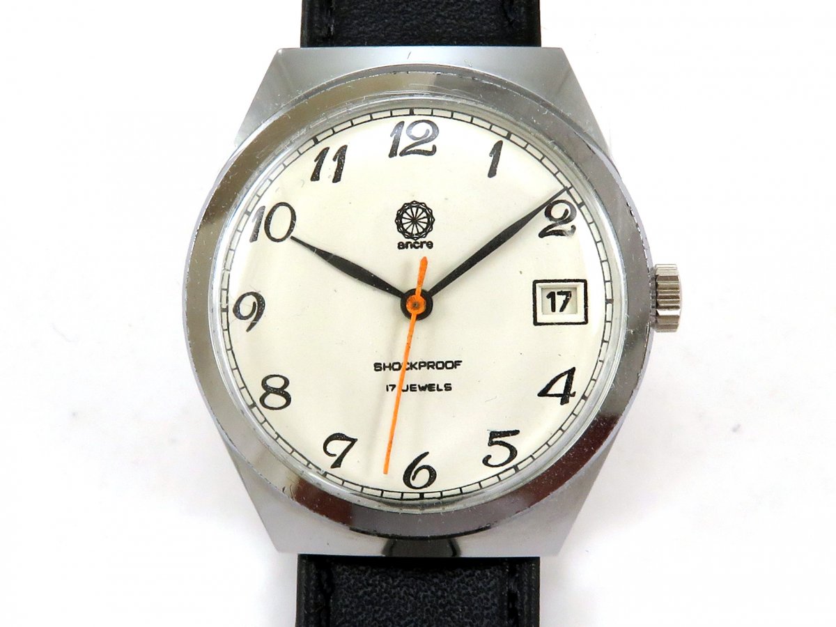 Exportní provedení hodinek PRIM typ 68 465 1 s logem ANCRE z 80. let.