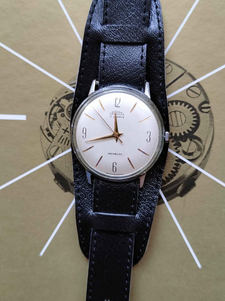 Prim Elegant - typ 66 119 1. Chromované pouzdro o průměru - 34 mm., Strojek cal. 66. Hodinky jsou plně funkční bez servisní historie. V ceně nový řemínek s podložkou. Jako starší, použité zboží bohužel bez záruky. Platba 900 Kč převodem na účet + 100 Kč poštovné: pošta nebo "zásilkovna". Vážný zájem video přes Messenger nebo WhatsApp. Nejbližší okolí po domluvě jsem schopen dovézt osobně. Do zahraničí a na dobírku neposílám. Pouze Slovensko po předchozí domluvě