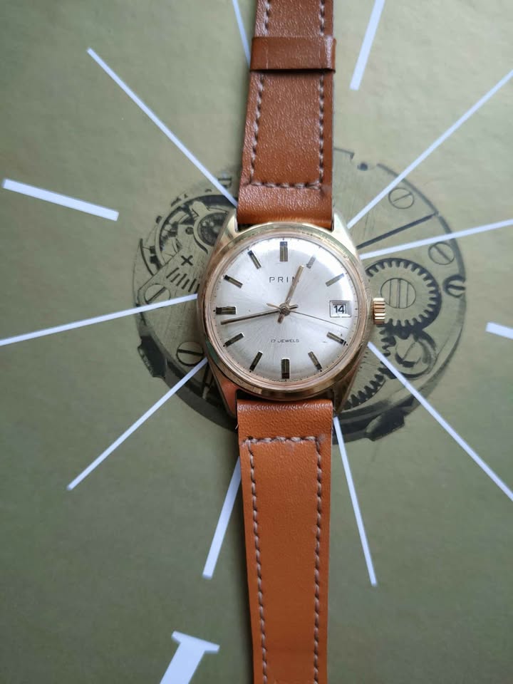 Prodám starší náramkové hodinky Prim " Elegant " - typ 68 176 3. Zlacené pouzdro - 34 mm., strojek cal. 68 s manuálním nátahem. Hodinky jsou plně funkční, datum překlápí. Nová korunka a nové péro. Jako starší, použité zboží bohužel bez záruky. Vážný zájem: video přes WhatsApp nebo Messenger. Cena 500 Kč převodem na účet + 100 Kč poštovné: pošta nebo "zásilkovna". Nejbližší okolí po domluvě jsem schopen dovézt osobně za poplatek. Do zahraničí a na dobírku neposílám. Pouze na Slovensko, po předchozí domluvě.