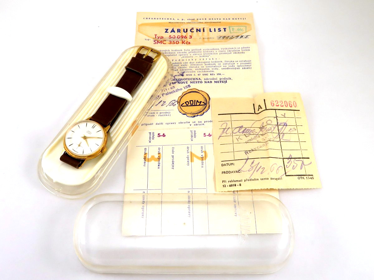 Náramkové hodinky PRIM prodané v prosinci roku 1966.