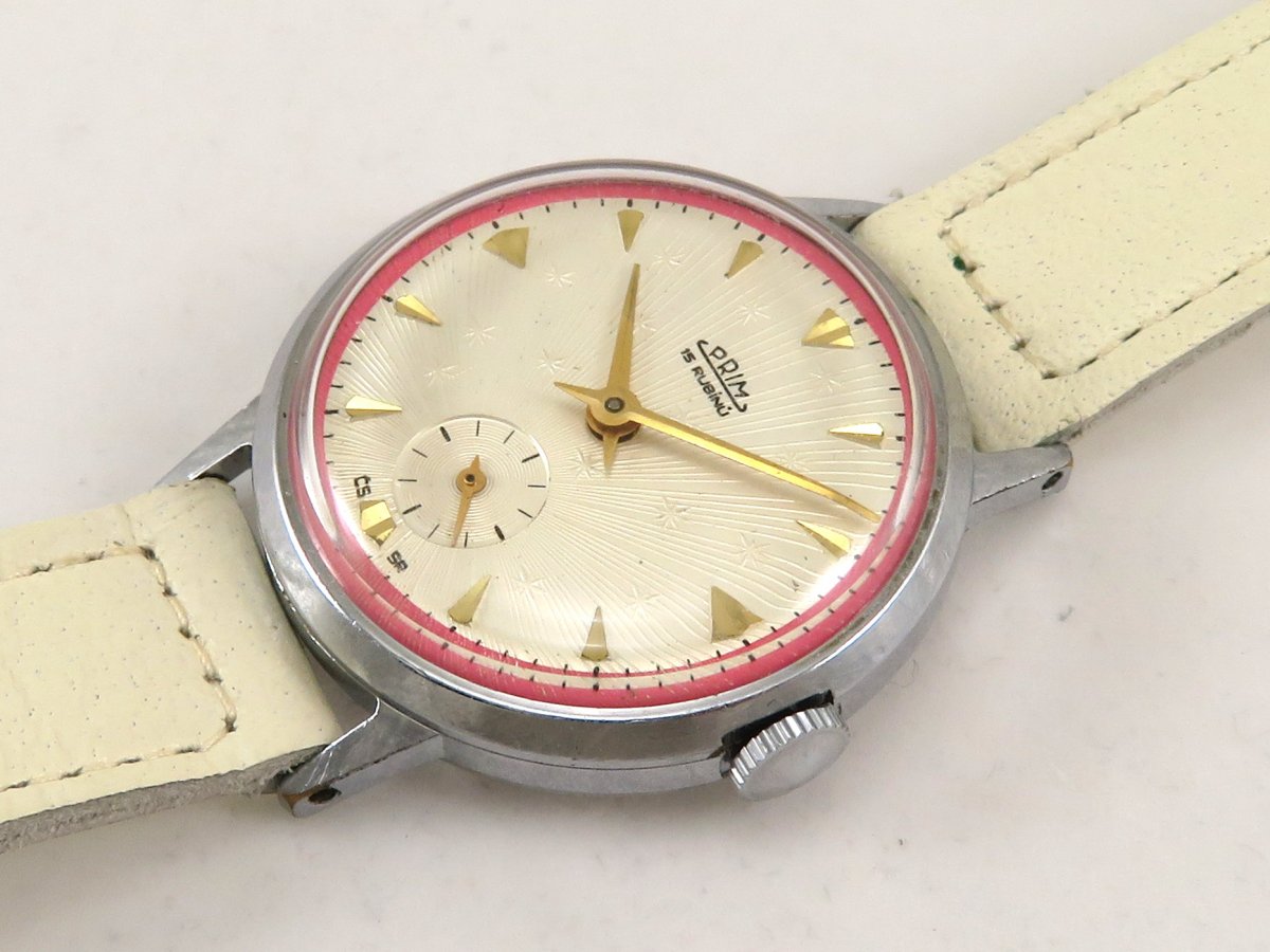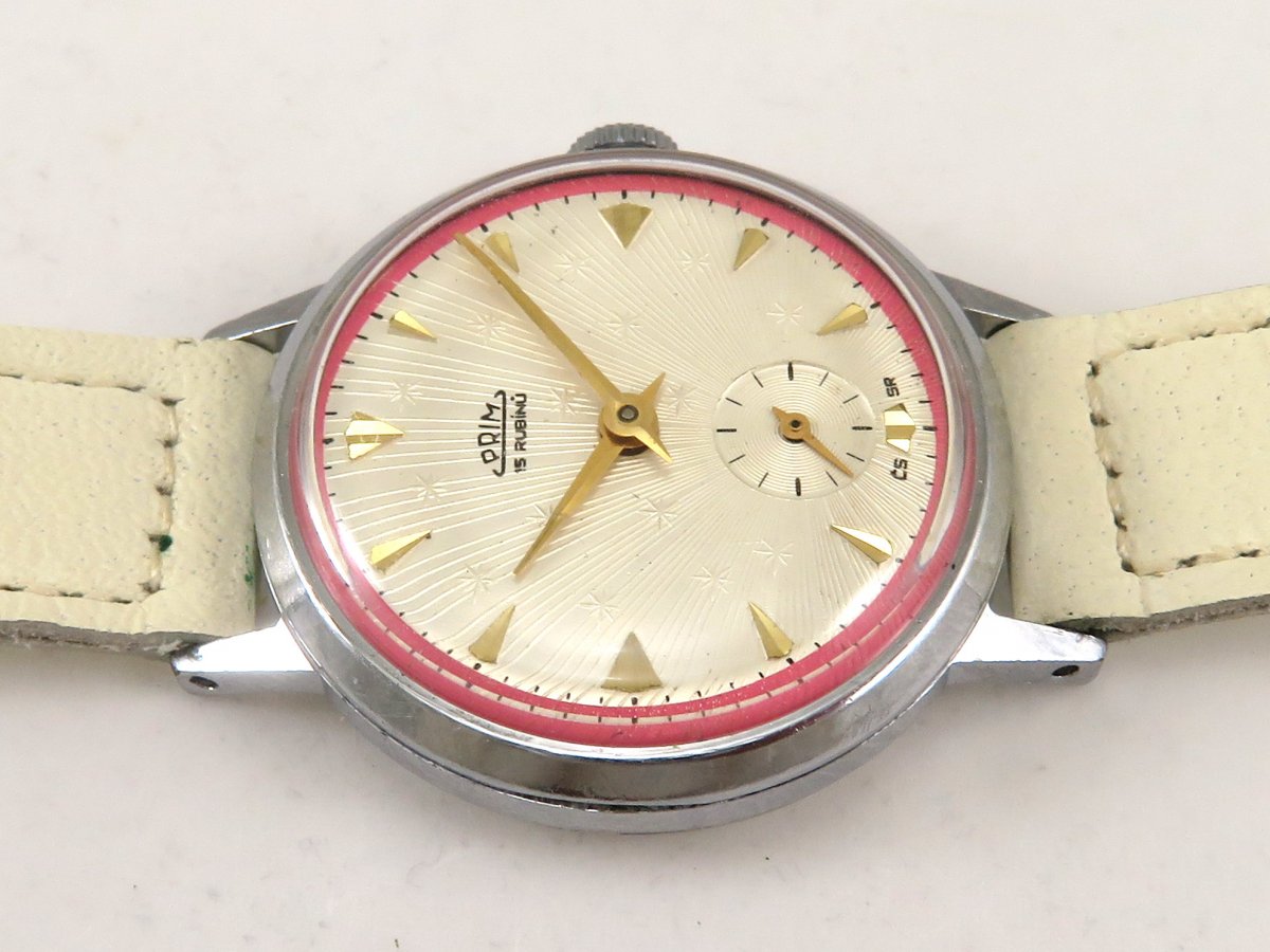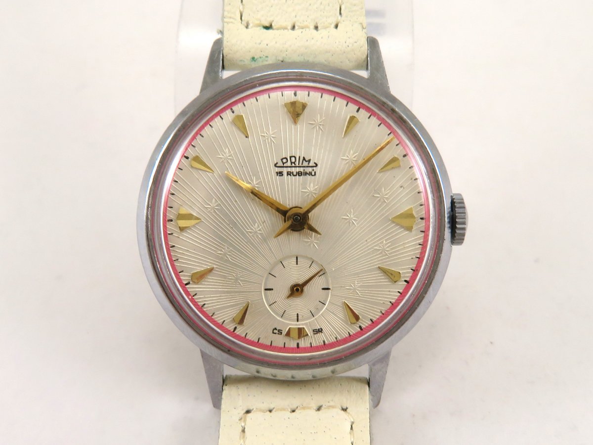 Hodinky PRIM "hvězdičky s červeným pruhem" z první poloviny 60. let. Typ 50 077 1.