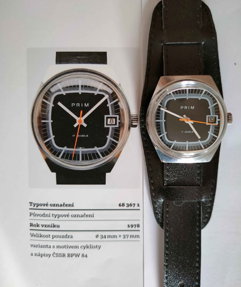 Prodám náramkové hodinky Prim alias - "malé TV" r.v. 1978. Chromované pouzdro průměru 34 x 37 mm. Typ. 68 367 1. Hodinky jsou plně funkční, seřízené, vyčištěné. Nové sklo. Řemínek s podložkou v ceně, případně může být i dvoudílný. Jako starší, použité zboží bohužel bez záruky. Platba 1 400 Kč převodem na účet + 100 Kč poštovné: pošta nebo "zásilkovna". Vážný zájem: video přes WhatsApp nebo Messenger. Nejbližší okolí po domluvě jsem schopen dovézt osobně za poplatek. Do zahraničí a na dobírku neposílám. Pouze na Slovensko, po předchozí domluvě.