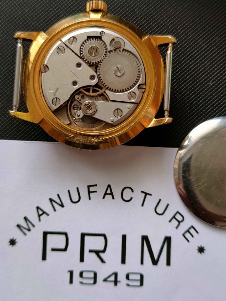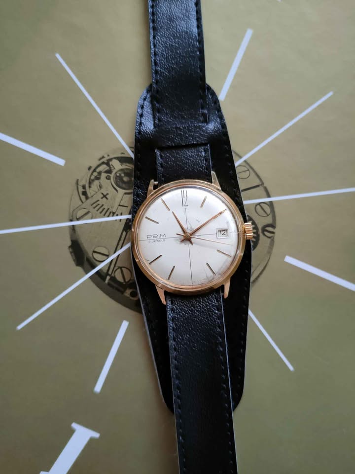 Prodám náramkové hodinky Prim Elegant - Oblekovky r.v. 1967 - model 68 135 3. Zlacené pouzdro v krásném stavu o průměru - 34 mm., Strojek cal. 68.1. Hodinky Jsou plně funkční. Nová korunka, řemínek v ceně. Jako starší, použité zboží bohužel bez záruky. Platba 900 Kč převodem na účet + 100 Kč poštovné: pošta nebo "zásilkovna". Vážný zájem video přes Messenger nebo WhatsApp. Nejbližší okolí po domluvě jsem schopen dovézt osobně. Do zahraničí a na dobírku neposílám. Pouze Slovensko po předchozí domluvě.