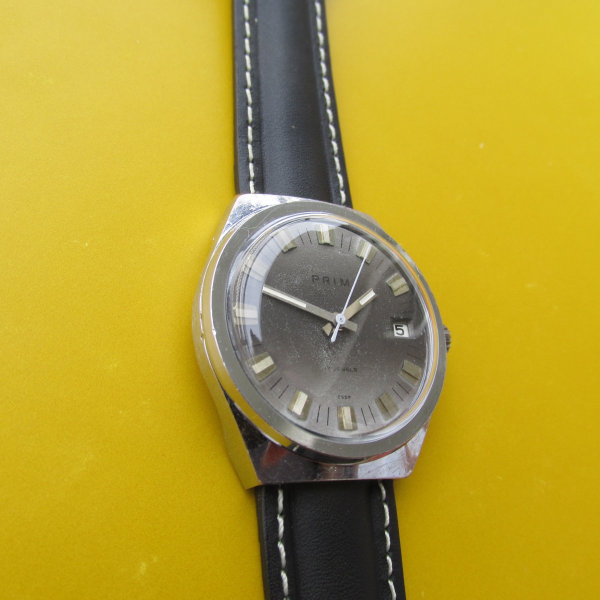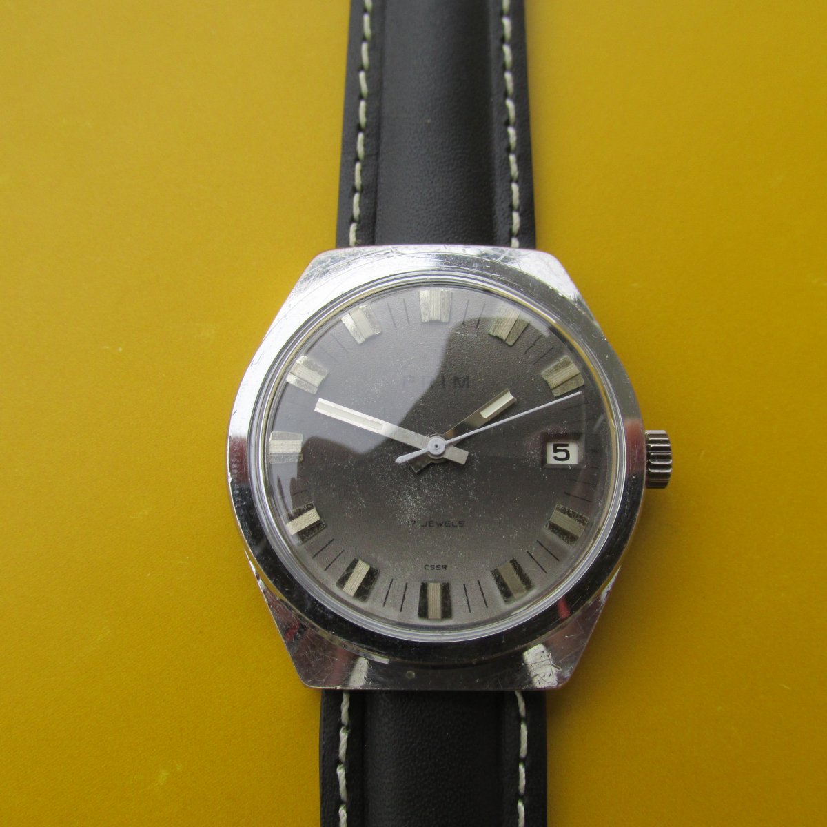 Plně funkční hodinky Prim v pěkném stavu. Nové originální sklo, ručky a korunka.