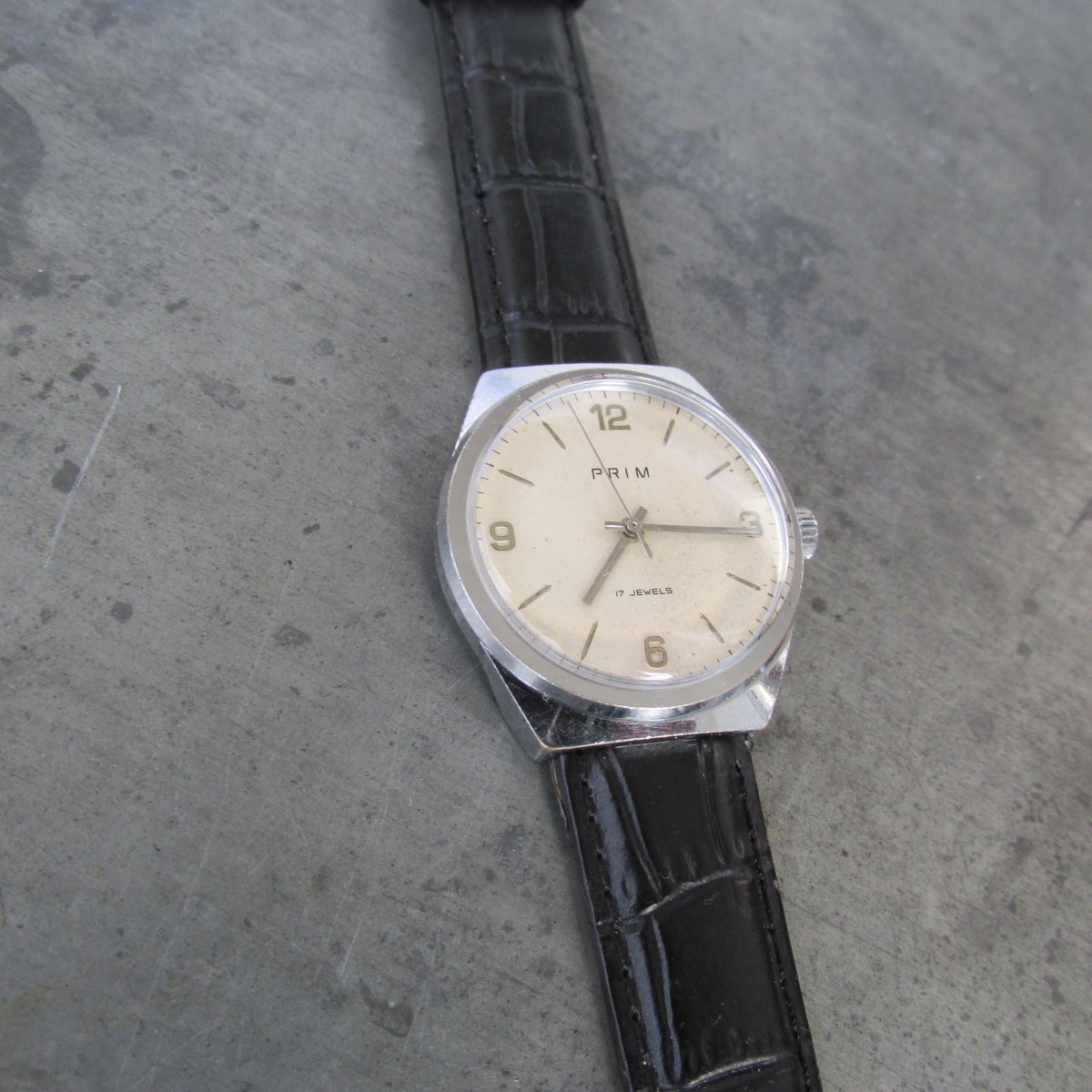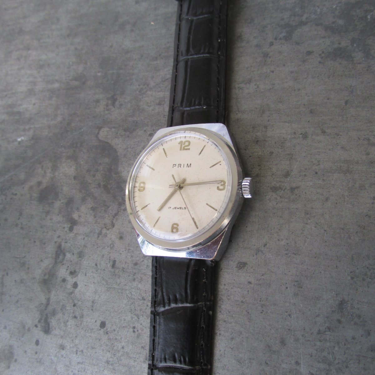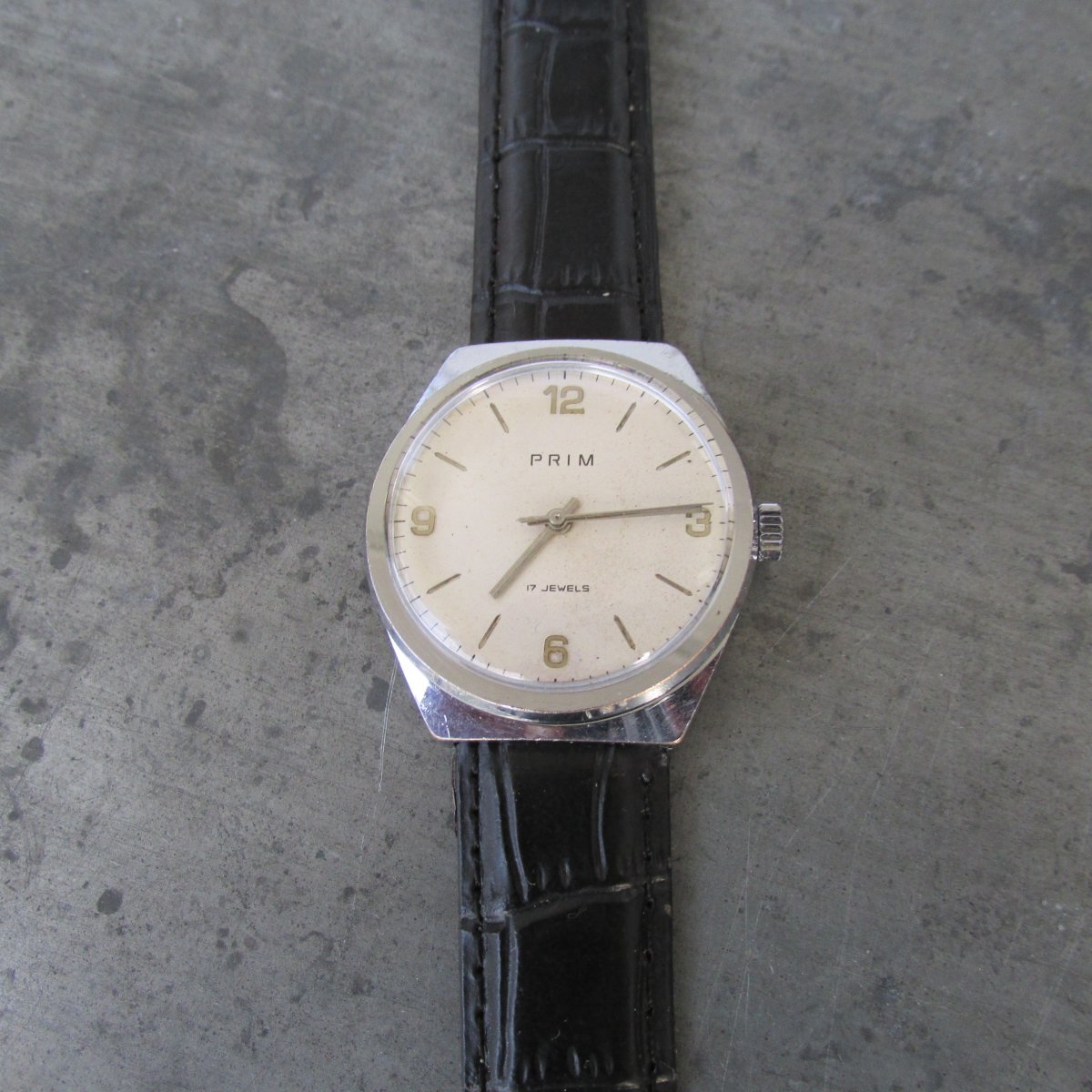 Pěkné funkční hodinky Prim v chromovaném pouzdře.