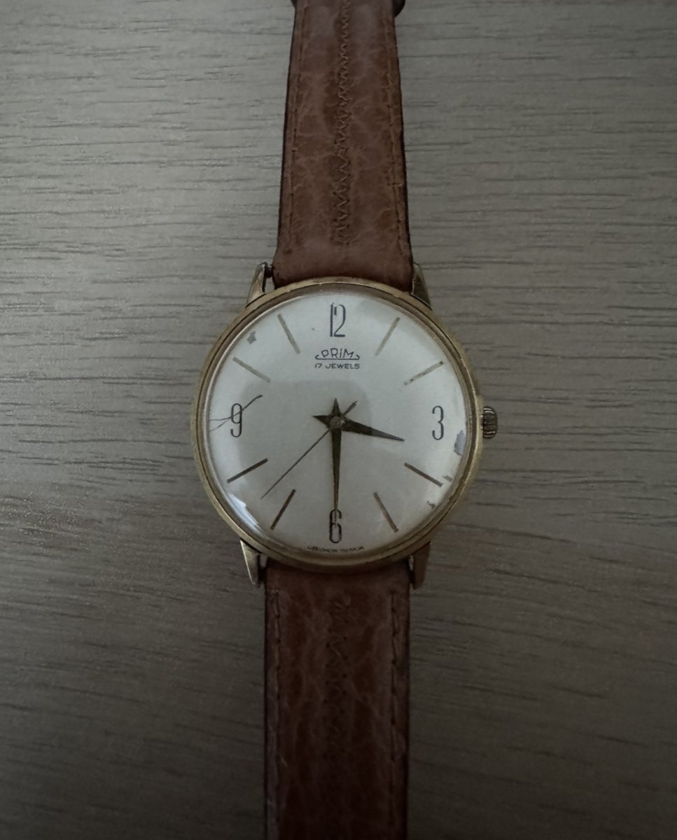 Prodám zlacené Primky s věnováním. Jsou funkční a řemínek je kožený a součástí. Stav viz foto.