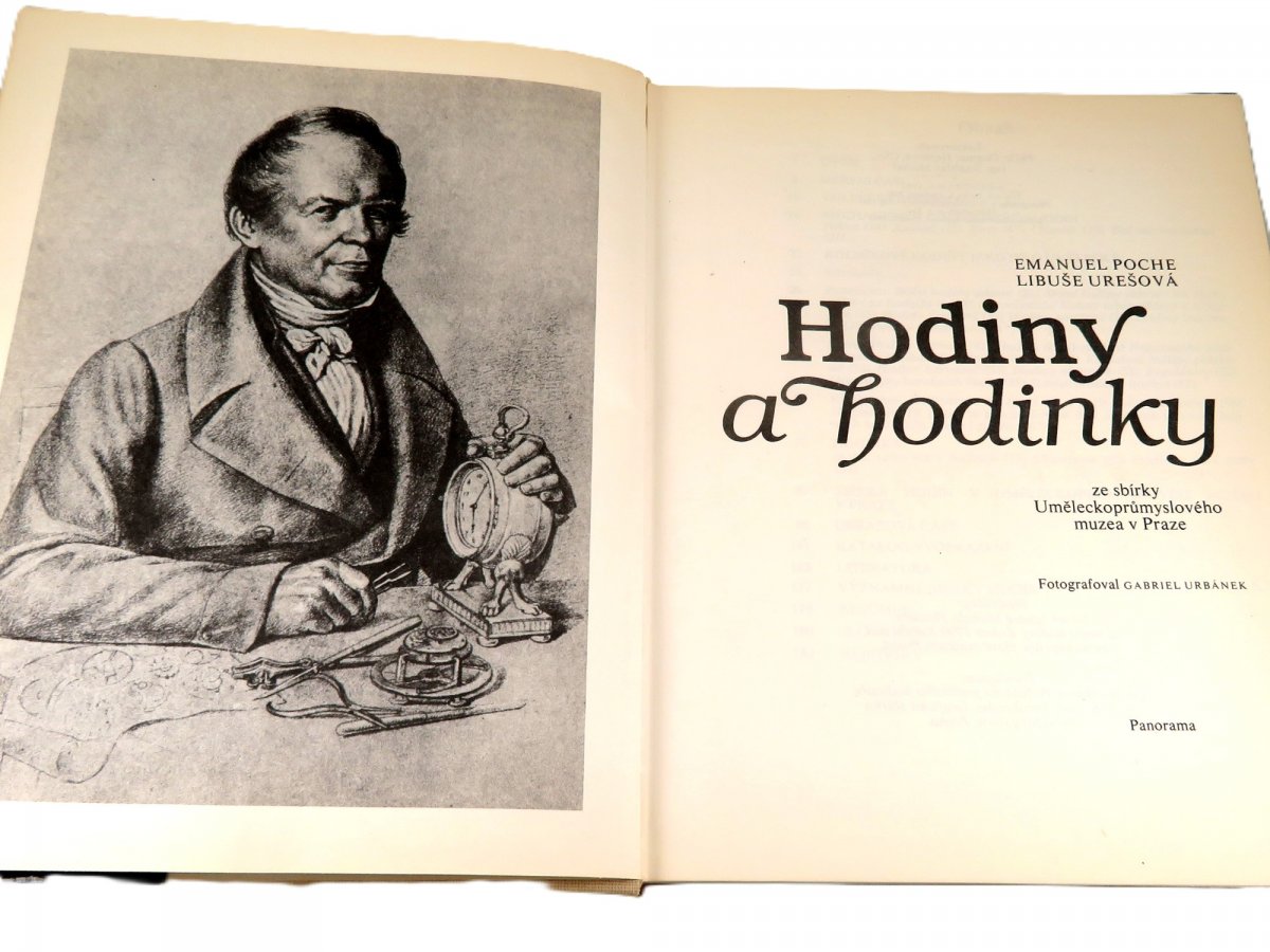 Kniha "Hodiny a hodinky ze sbírky Uměleckoprůmyslového muzea v Praze" od autorů Emanuel Poche a Libuše Urešová.