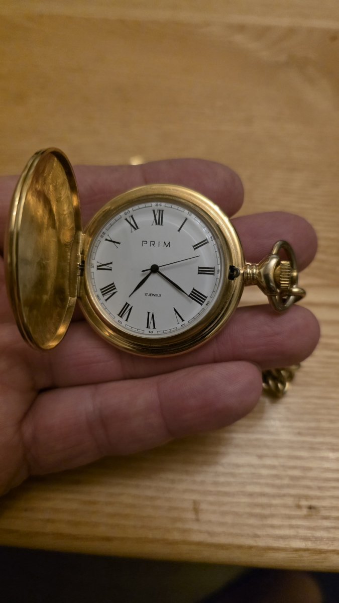 Prodám velmi vzácné kapesní hodinky Prim v nádherném zlatém provedení. Historie hodinek je popsaná v knize pana Hovorky, popisuje se jak bylo pár kusu vyrobenych pro Klausovou vládu atd. Luxusní SBÍRKOVÝ STAV!!! Originál řetizek k hodinkám zdarma.
