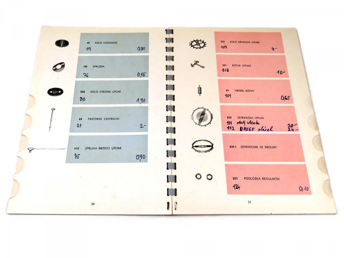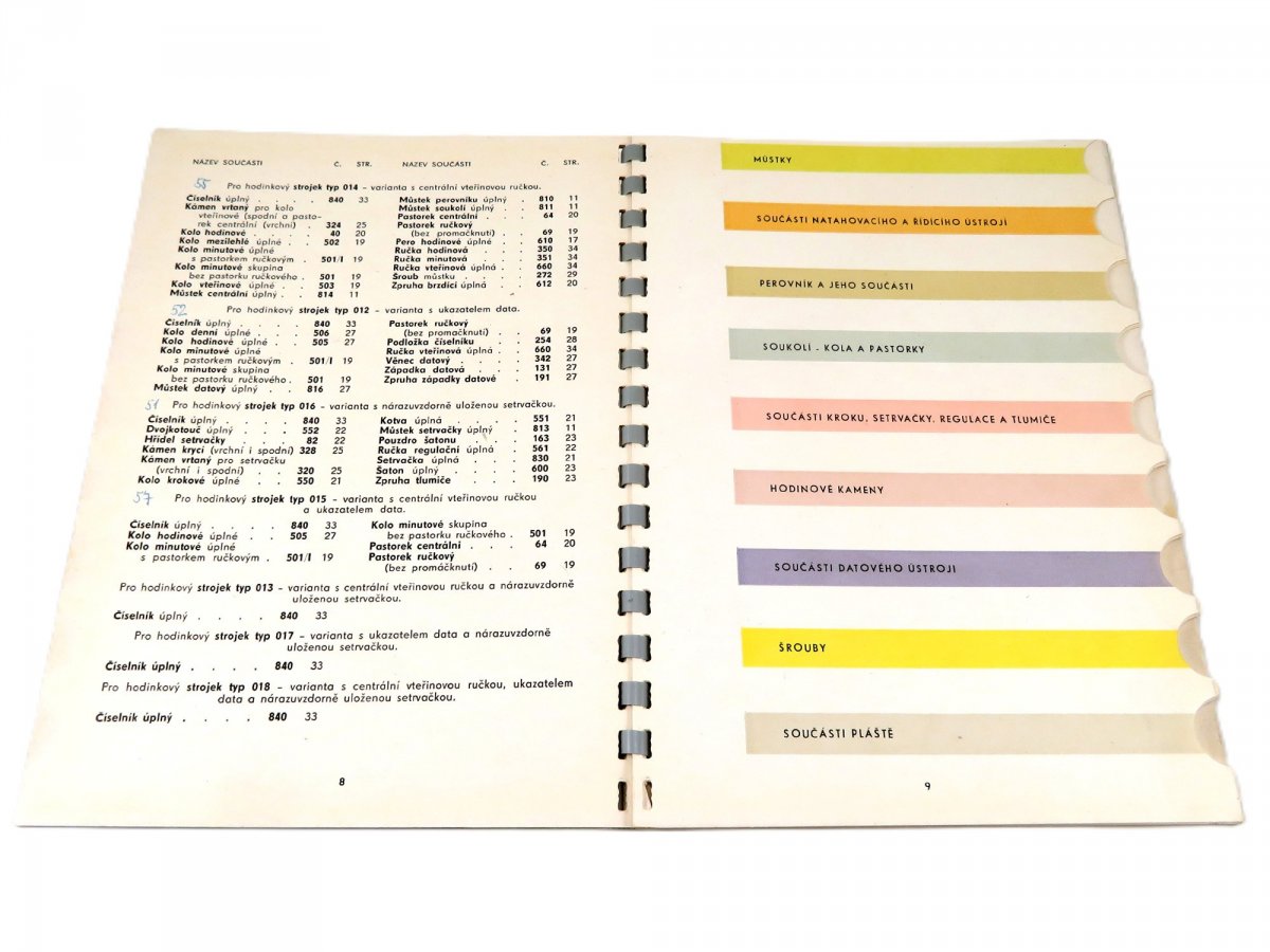 Obsahuje kompletní přehled dílů ke strojkům Prim té doby a také některé typy zapouzdření hodinek.