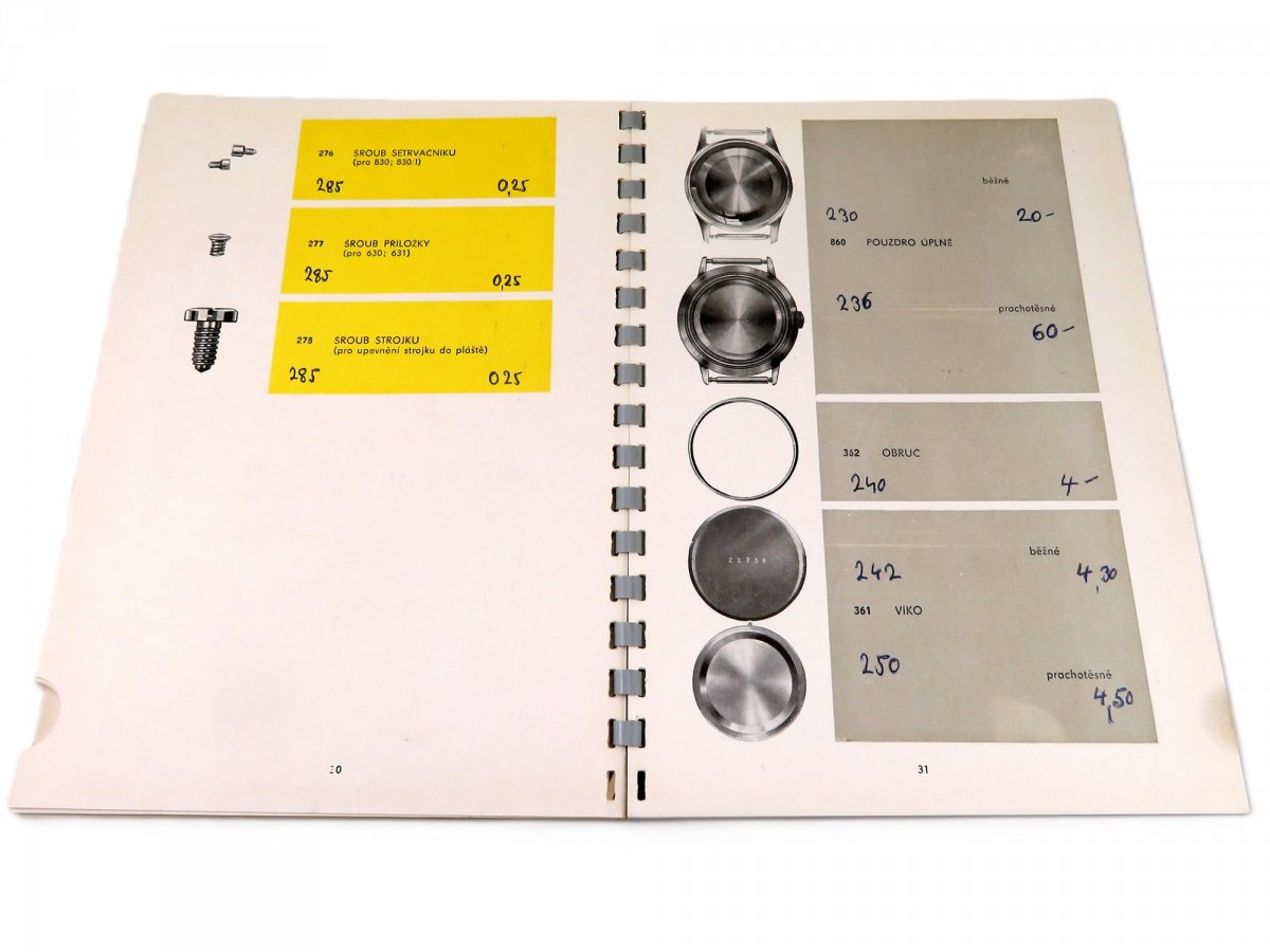 Katalog náhradních dílů k náramkovým hodinkám Prim z 60. let minulého století.