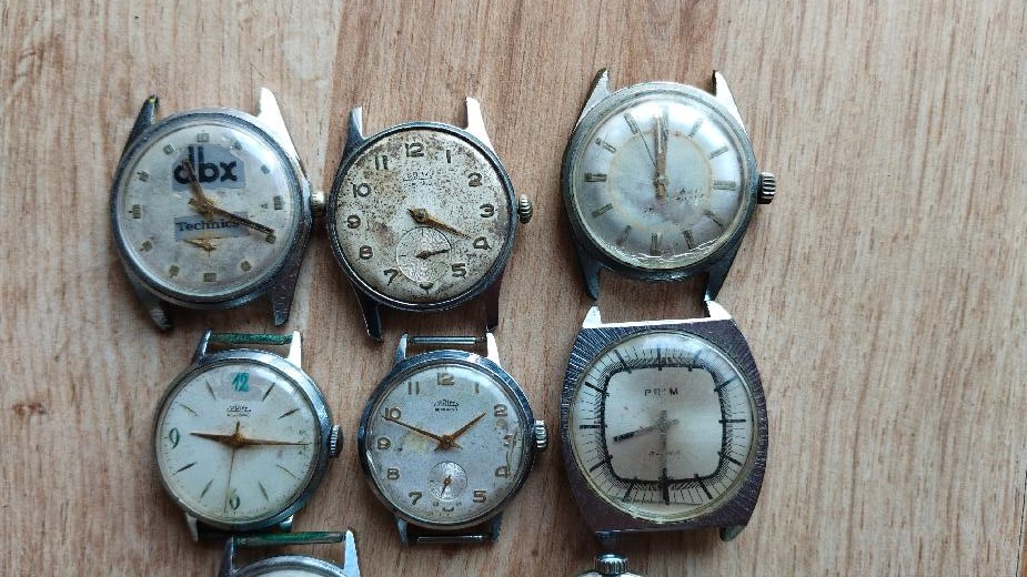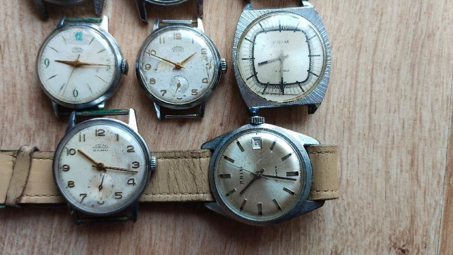 Hodinky Prim 5 ks funkční 3 ks nefunkční nečištěno ,Stav viz foto.Hodinky jsou vyřazené z mé osobní sbírky,zboží je použito a tudíž bez záruky.Kupujete to co je na fotu.Snažil jsem se to nafotit v realnem stavu-viz foto.Odesílém řádně zabaleno a pojištěné.Poštuvné dle ceníku ČP.ZÁSILKOVNA.