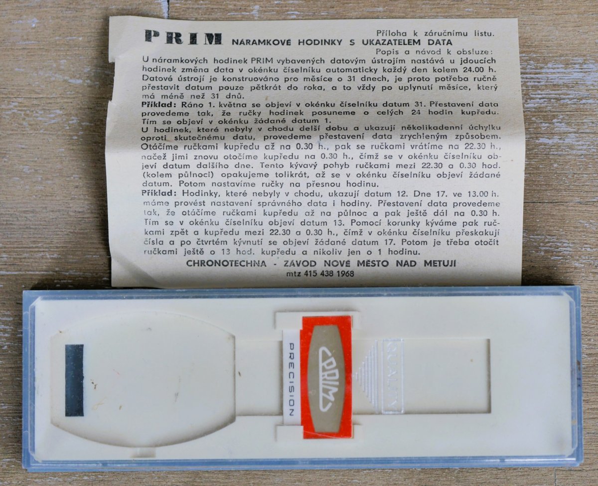 Je k ní dobová příloha k záručnímu listu a dobový štítek Prim (originál - nejedná se o reprint).