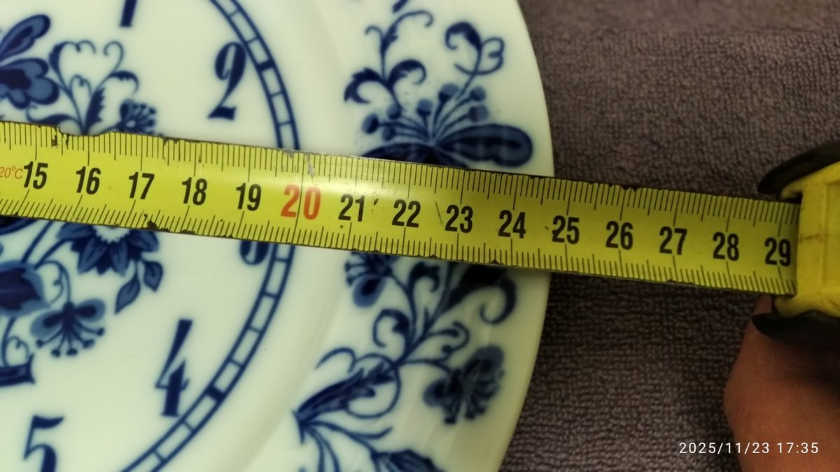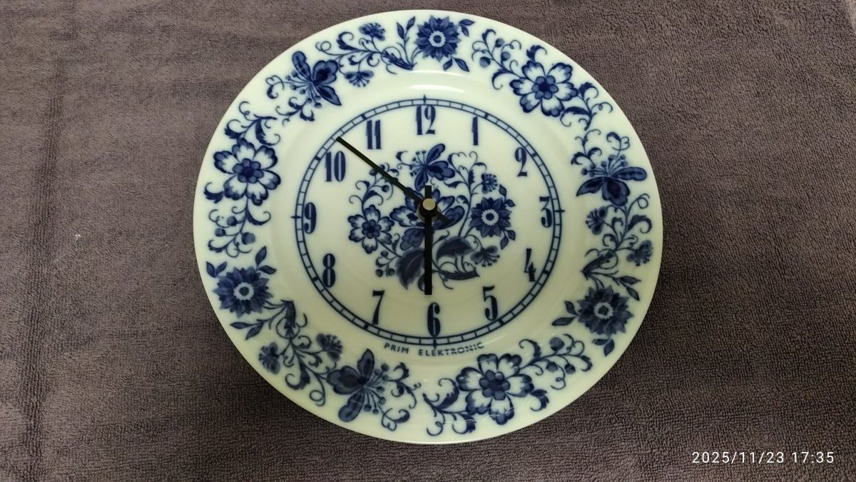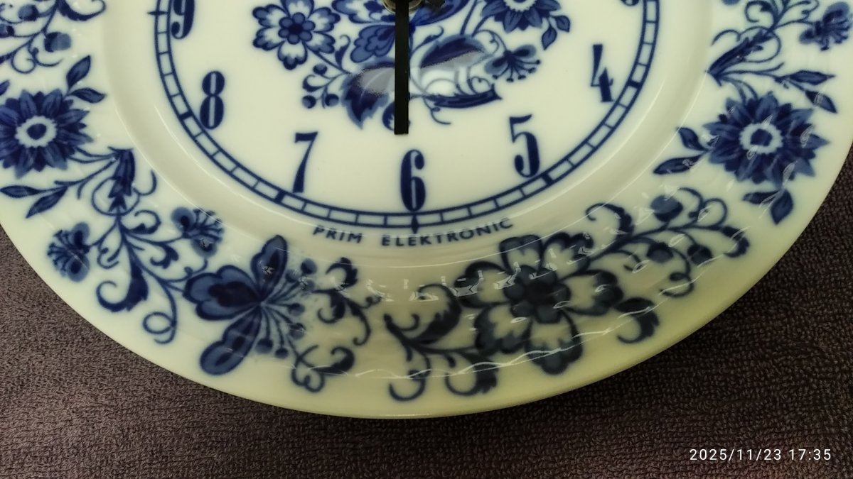 vzácnějši modré hodiny natištěné na lisovaném talíři,hodiny jsou funkční