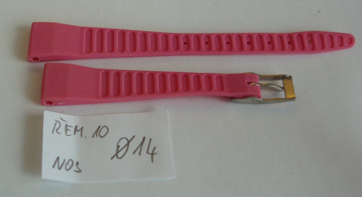 NOS silikonový řemínek č. 10 růžový 14 mm se stříbrnou sponou