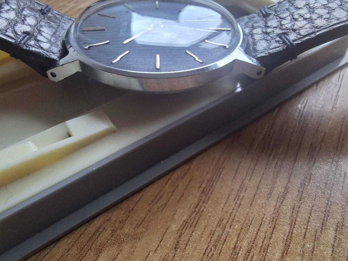 Nabízím pásnké pyžama v moc hezkém stavu. Hodinky jsou s ručně dělaným koženým řemínkem od "Prokop Buben", laděný do barvy hodinek. Hodinky nabízím s krabičkou, avšak horní kryt je poničený.