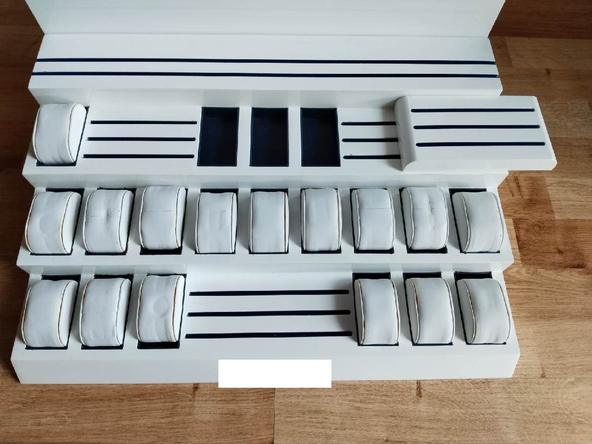 Stojan na Hodinky, PARÁDNÍ KOUSEK PRO VAŠE HODINKY,, značky na fotu zakrytá F-----A ,Stav viz foto.Hodinky jsou vyřazené z mé osobní sbírky,zboží je použito a tudíž bez záruky.Kupujete to co je na fotu.Snažil jsem se to nafotit v realnem stavu-viz foto.Odesílém řádně zabaleno a pojištěné.Poštuvné dle ceníku .ZÁSILKOVNA.