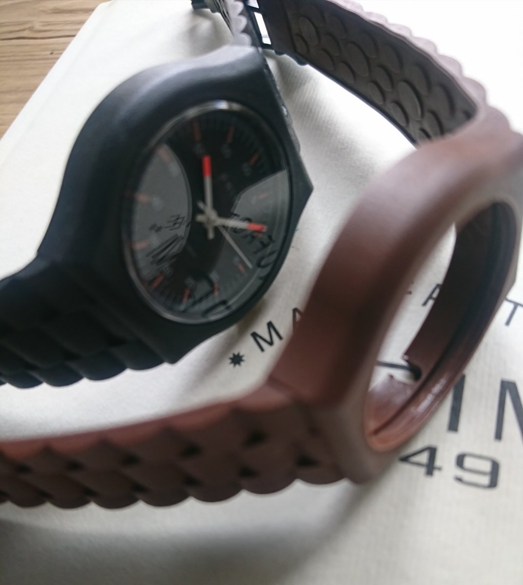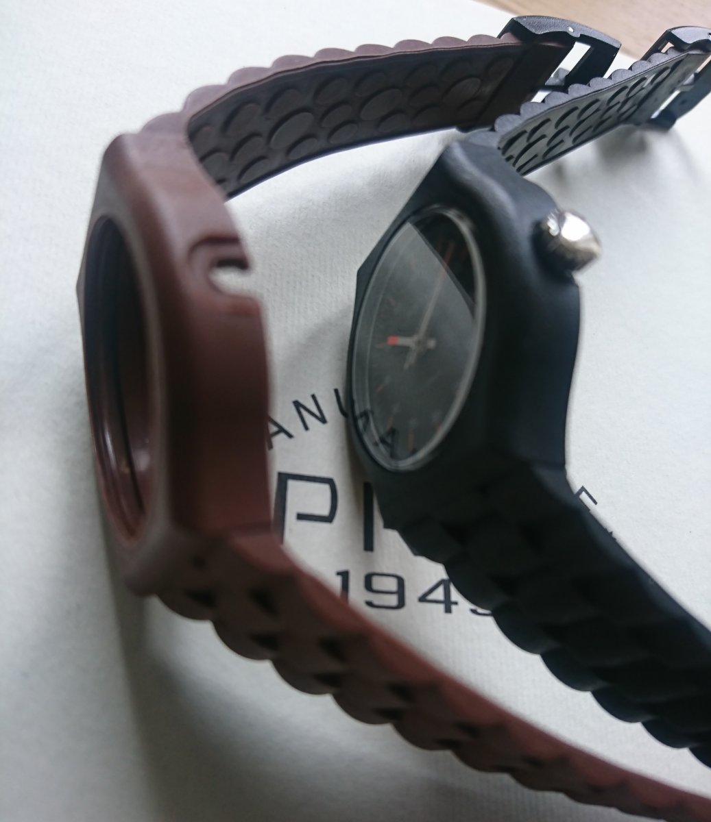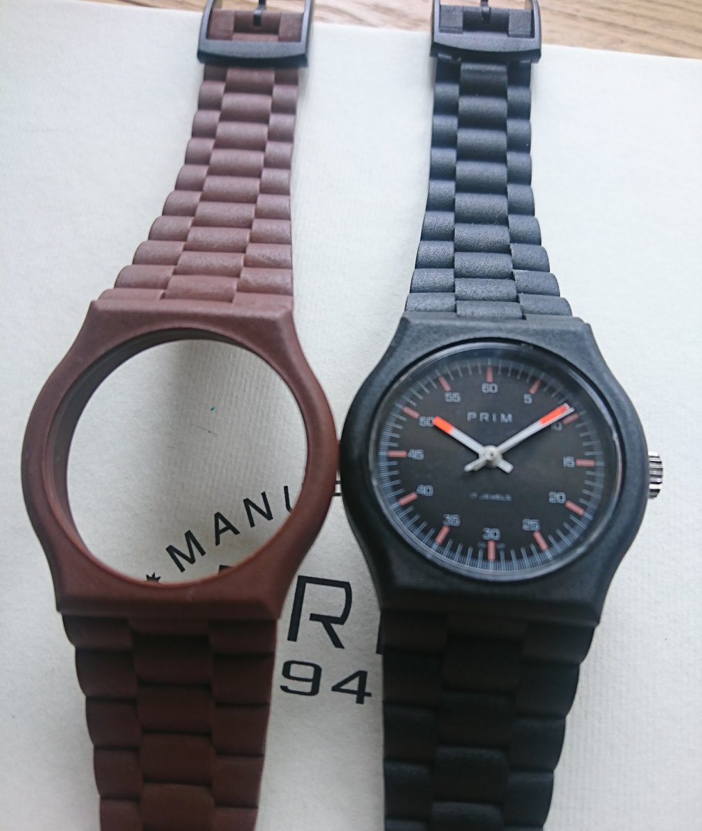Plastové prim černé cal66 + náhradní hnědý pásek.