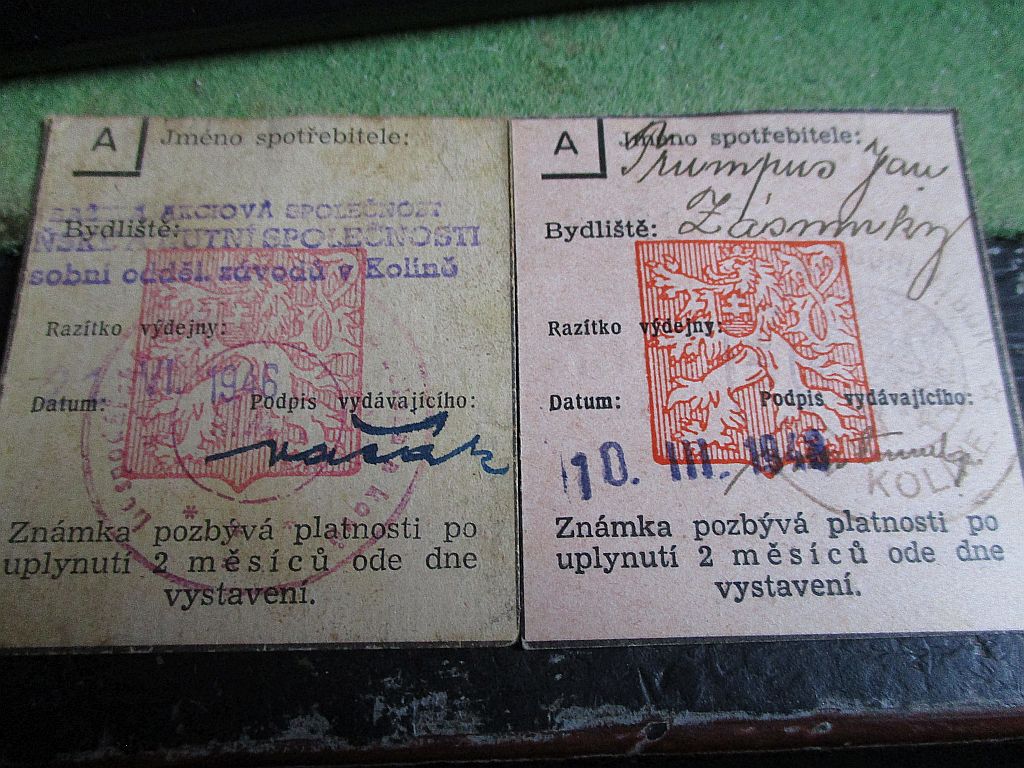 Lístky pro zvláštní příděly1948 originál 2 ks, MNV v Kolíně.