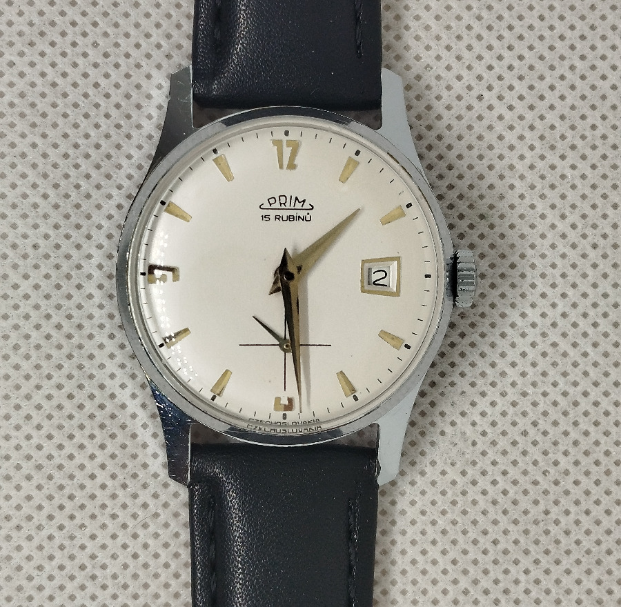 Ponúkam na predaj pekné PRIM 15 RUBINU , priemer bez korunky je 32 mm , číslovane dinko , nový remienok v peknom stave , posielam v plechovej krabičke , zbierkovy funkčný stav , dátum prehadzuje , alebo darček na Vianoce.