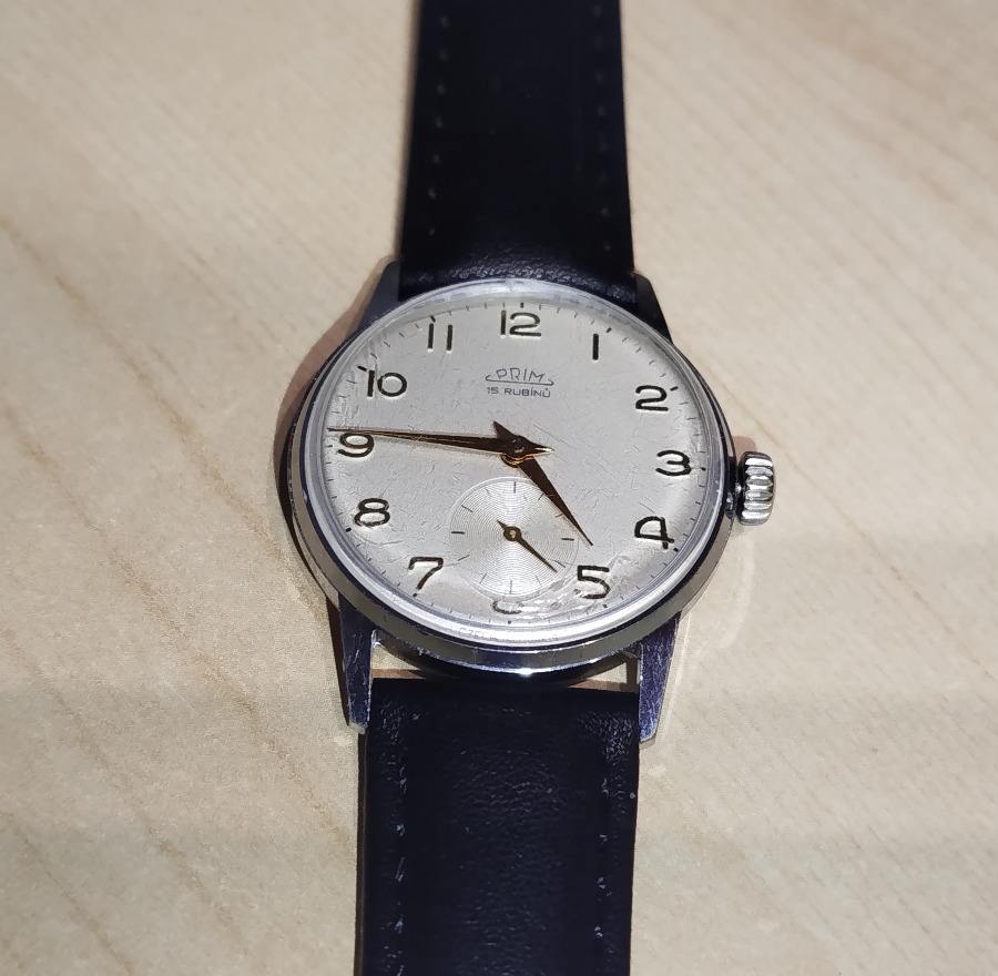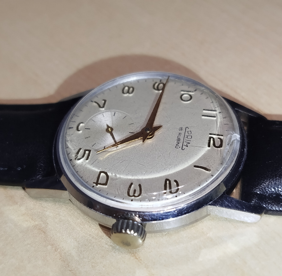 Zobrazené PRIM 15 RUBINU sú plne funkčné,majú strojček cal 50.1 a nový remienok,ale POZOR prasknuté skličko na pozicii 12,priemer je 32 mm bez korunky,