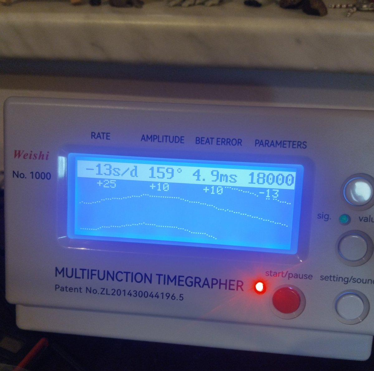 Měřeno ve vodorovné poloze ciferníkem nahoru